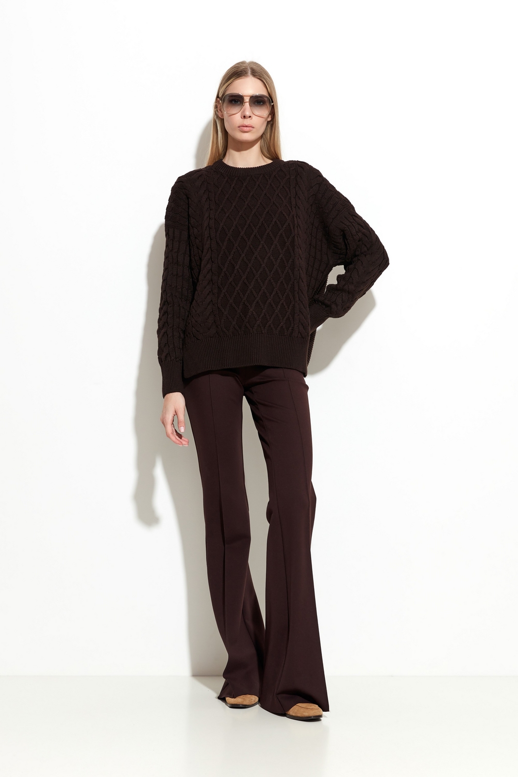 Джемпер свободного кроя Lakbi из коллекции осень-зима 2025/26 — это образец повседневной универсальности, переосмысленной в духе актуального минимализма. Модель выполнена из мягкой пряжи с составом 50% хлопок и 50% полиакрил (ПАН), что обеспечивает баланс между природным комфортом и долговечностью. Джемпер имеет свободный силуэт, спущенную линию плеч и широкую резинку по низу — эти детали создают расслабленный, но собранный образ.