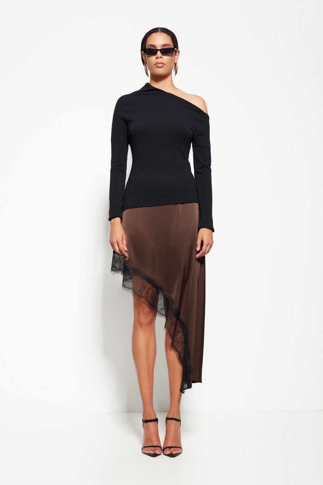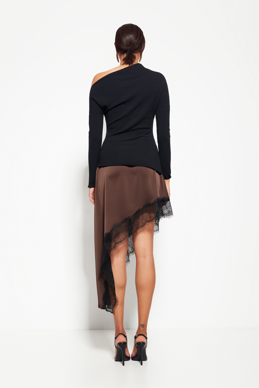 Модель из коллекции Party 2026 — джемпер с открытым плечом, создающий выразительный и современный образ. Прилегающий крой подчёркивает силуэт, а длинные рукава добавляют элегантности.