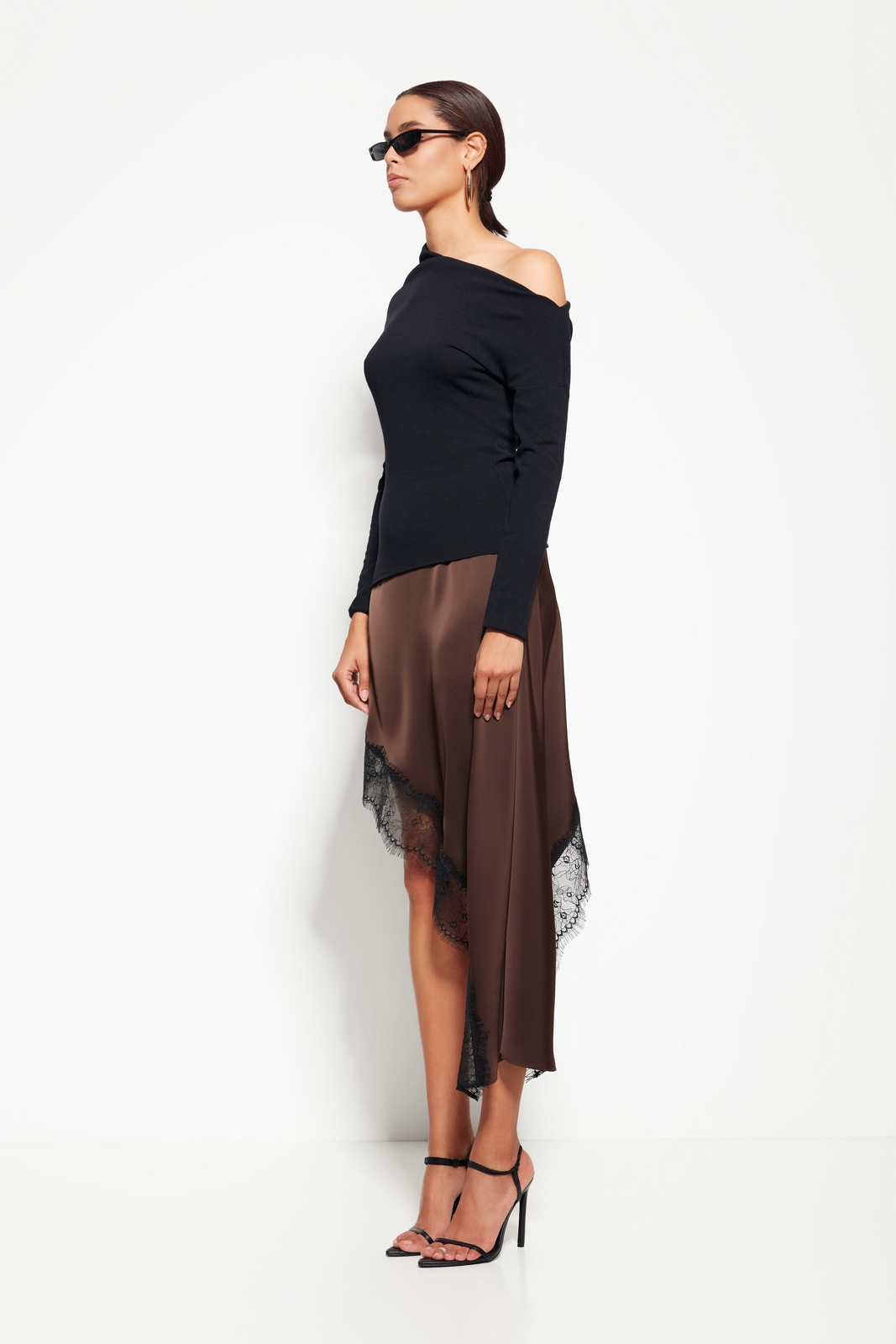 Открытое плечо добавляет акцент и динамичность образу.