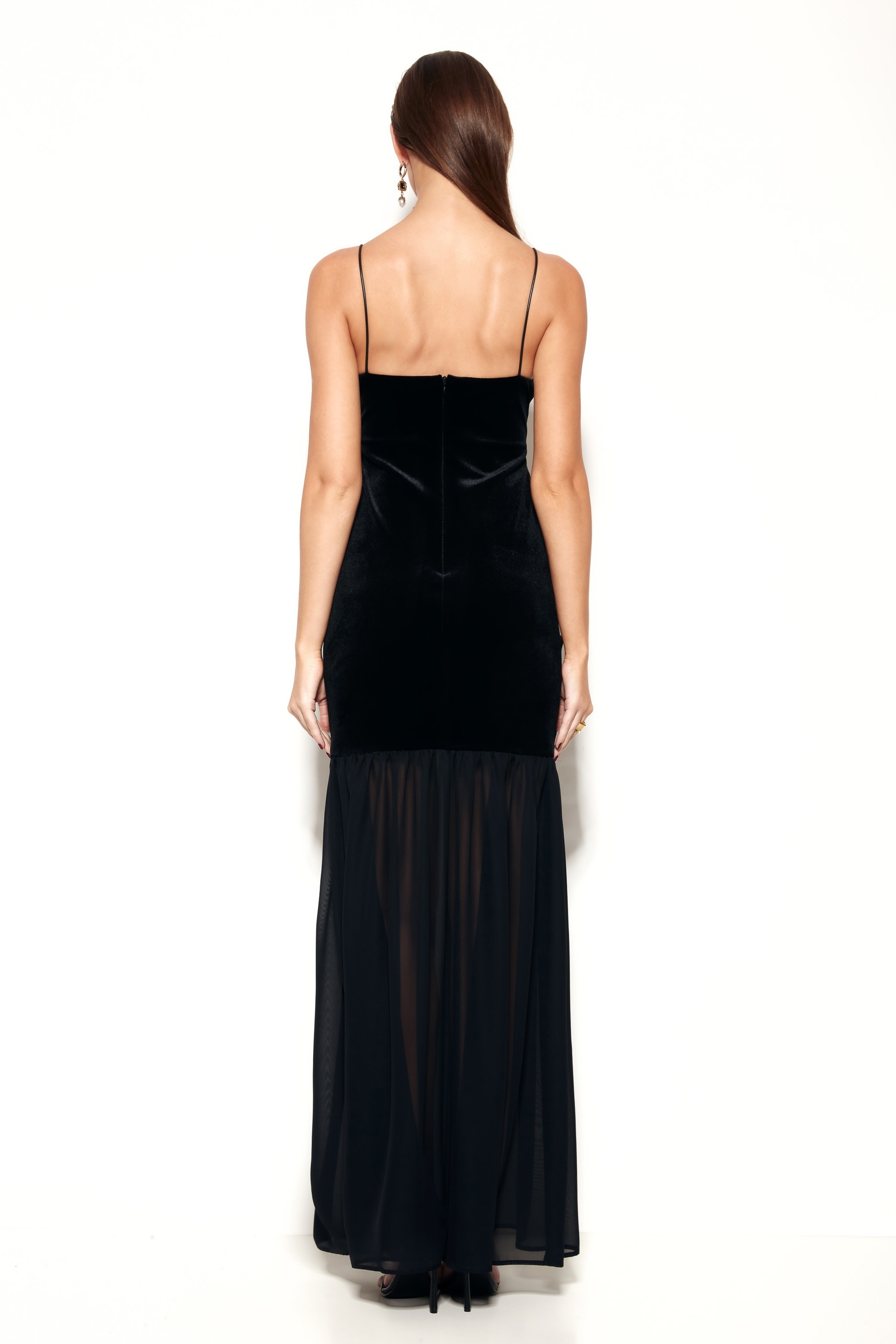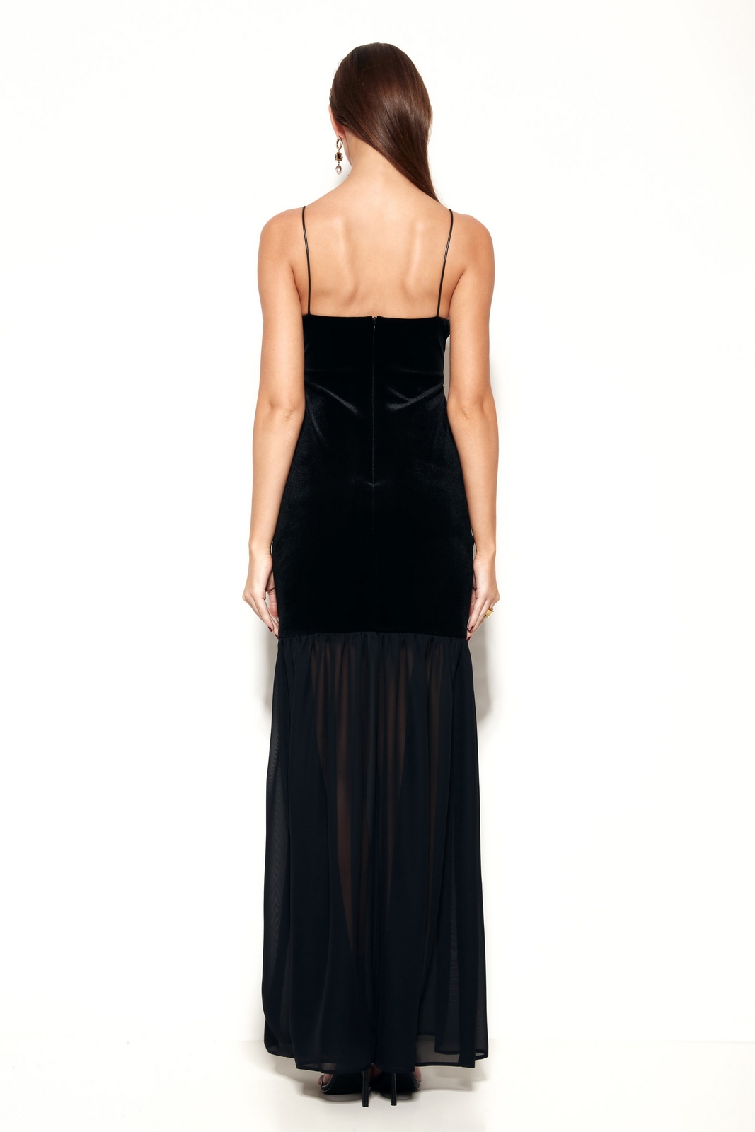 Полуприлегающий силуэт и вставки из полупрозрачной ткани подчеркивают силуэт и делают образ воздушным и романтичным.