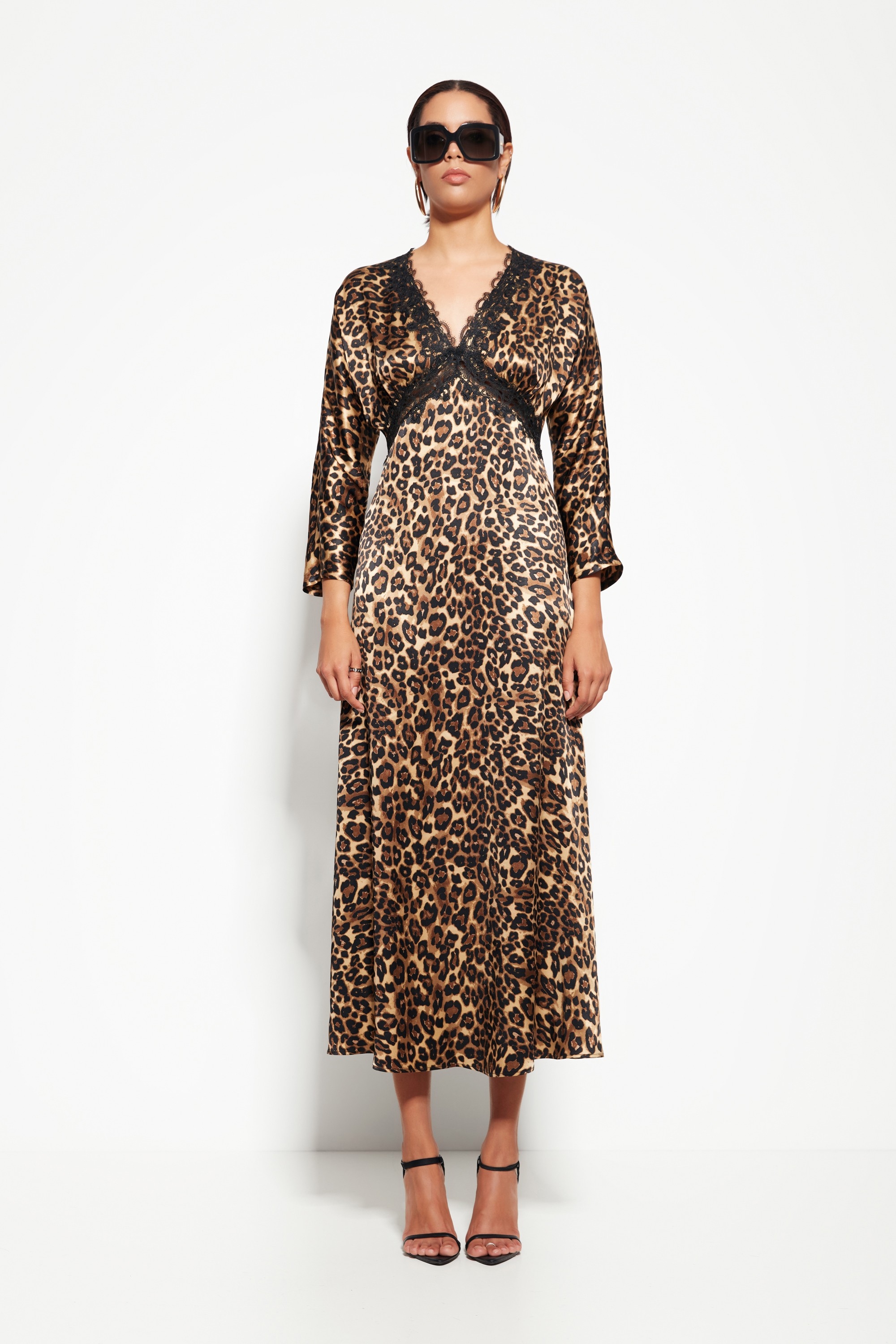 Платье Lakbi 55248: леопардовый шик с кружевными вставками — идеальный выбор для вечернего образа.