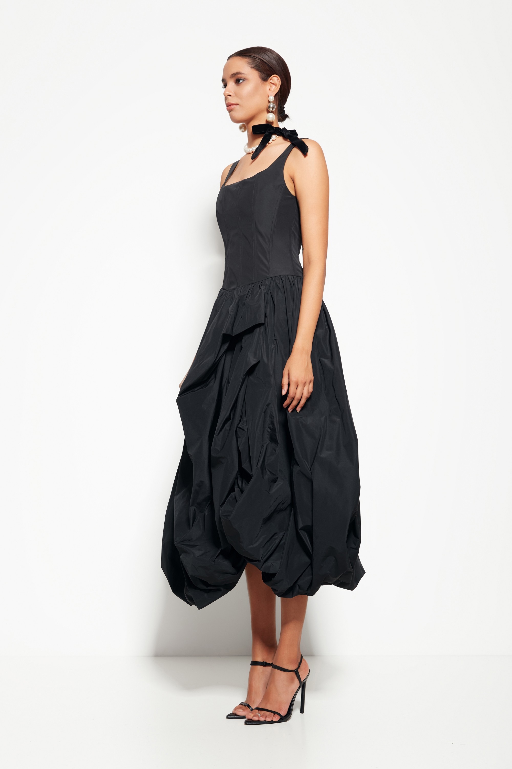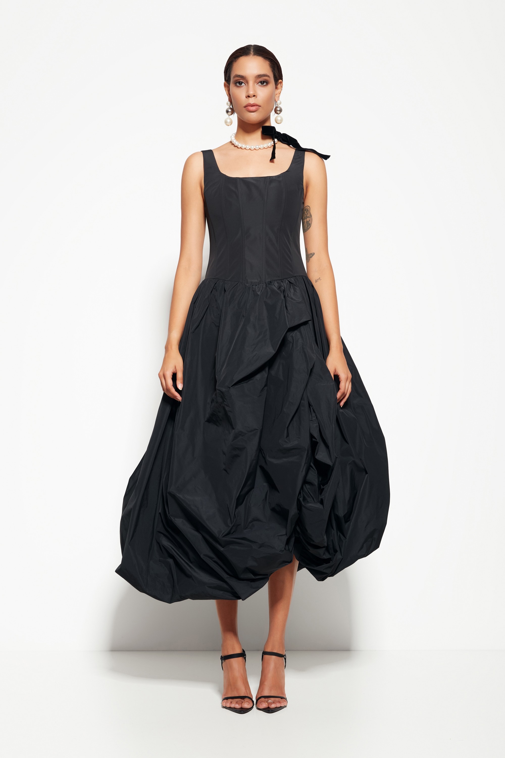 Крой: Приталенный верх, подчёркивающий талию, и пышная юбка, создающая эффектный силуэт.