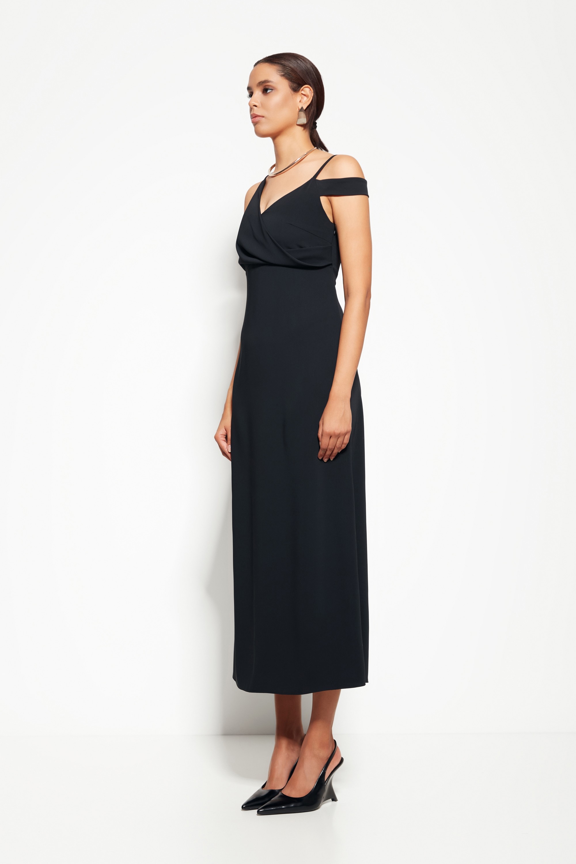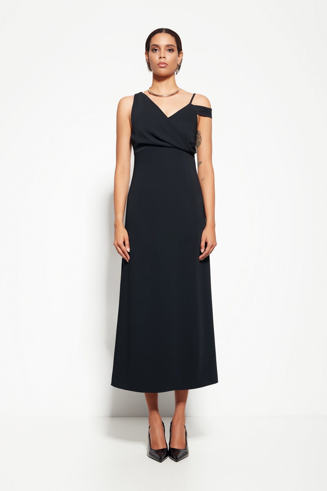 Платье Lakbi 55296: вечерняя элегантность в длине миди с акцентными бретелями.