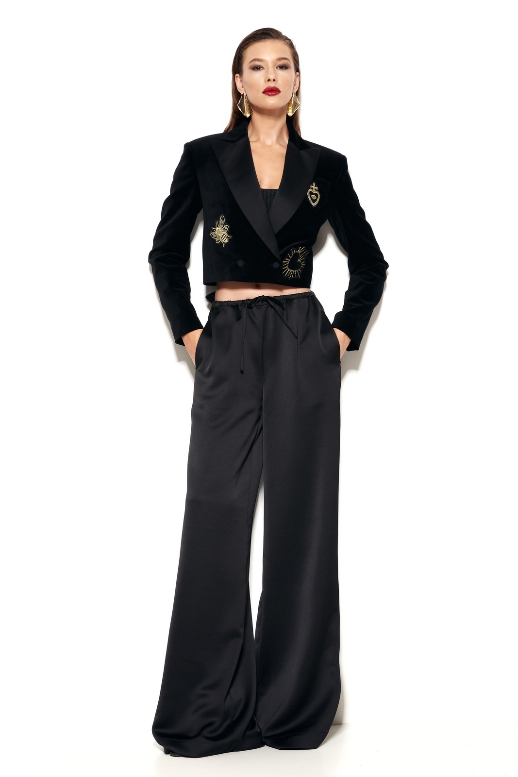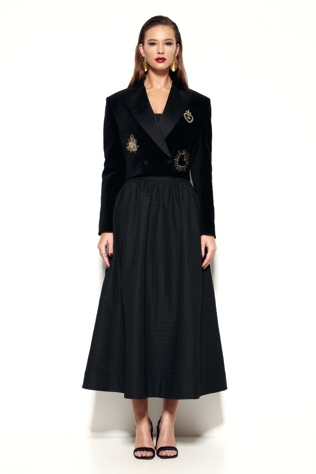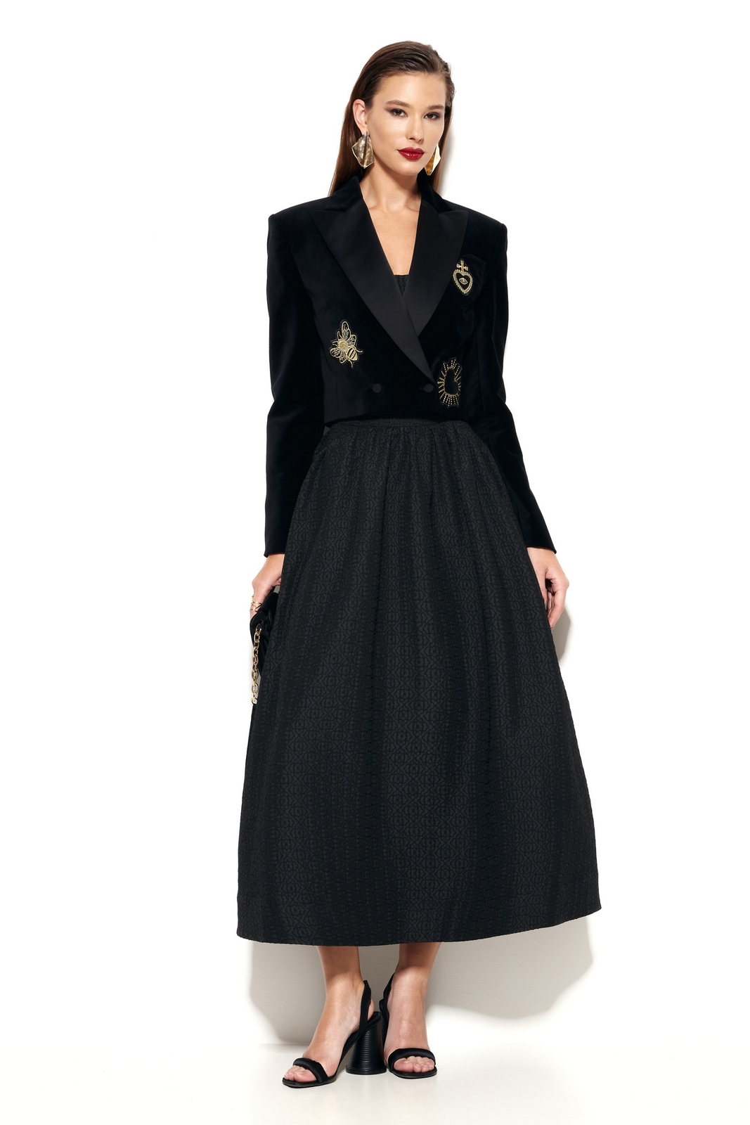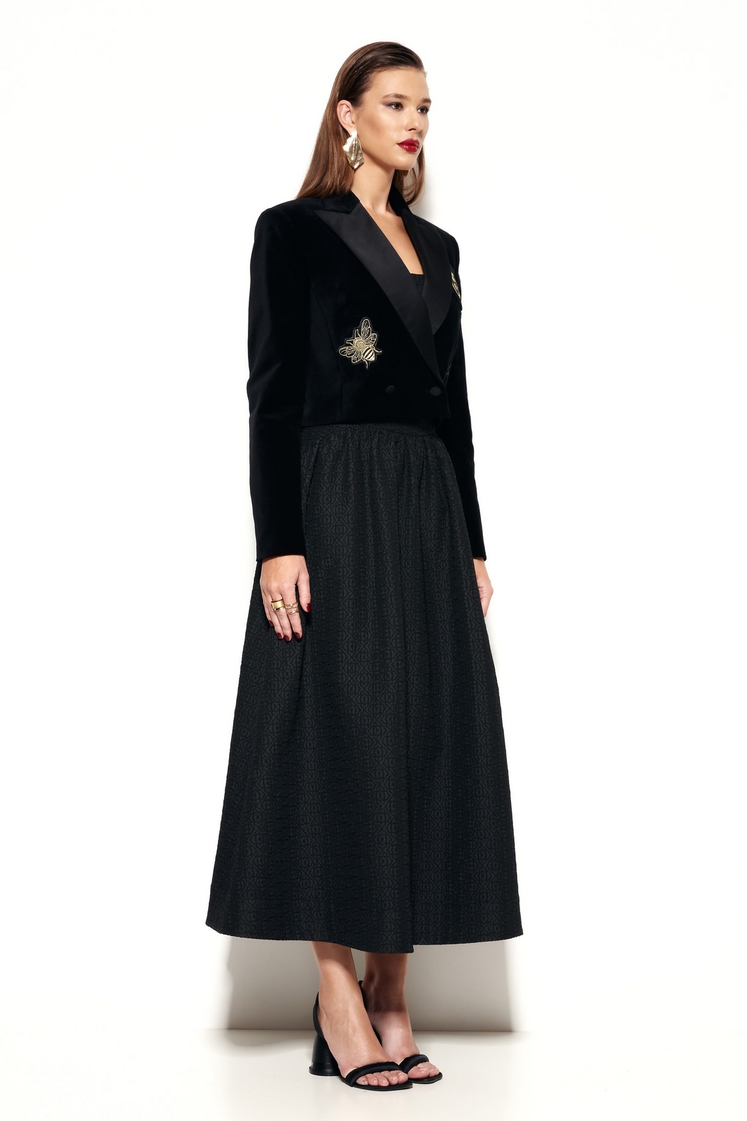 Жакет бархатный полуприлегающего силуэта, укороченной длины.