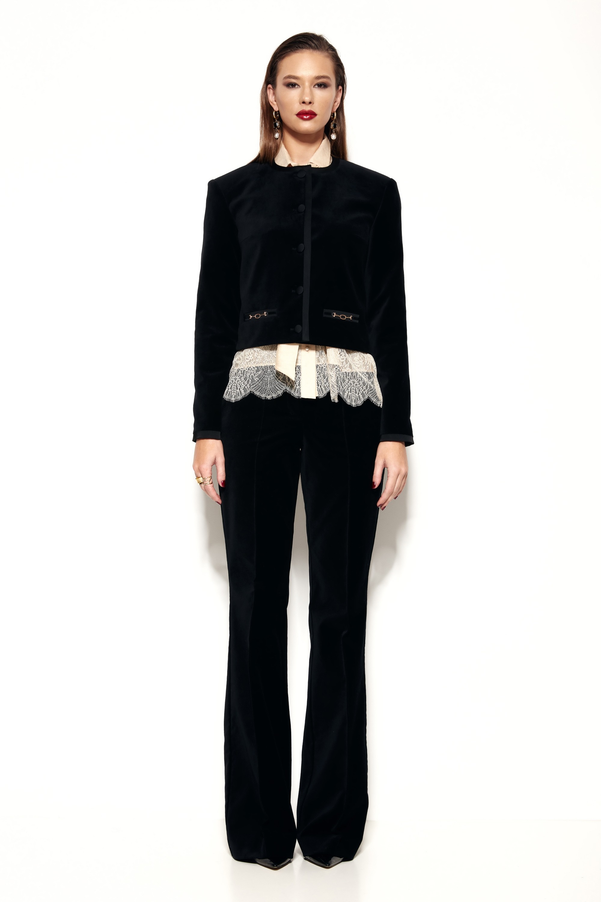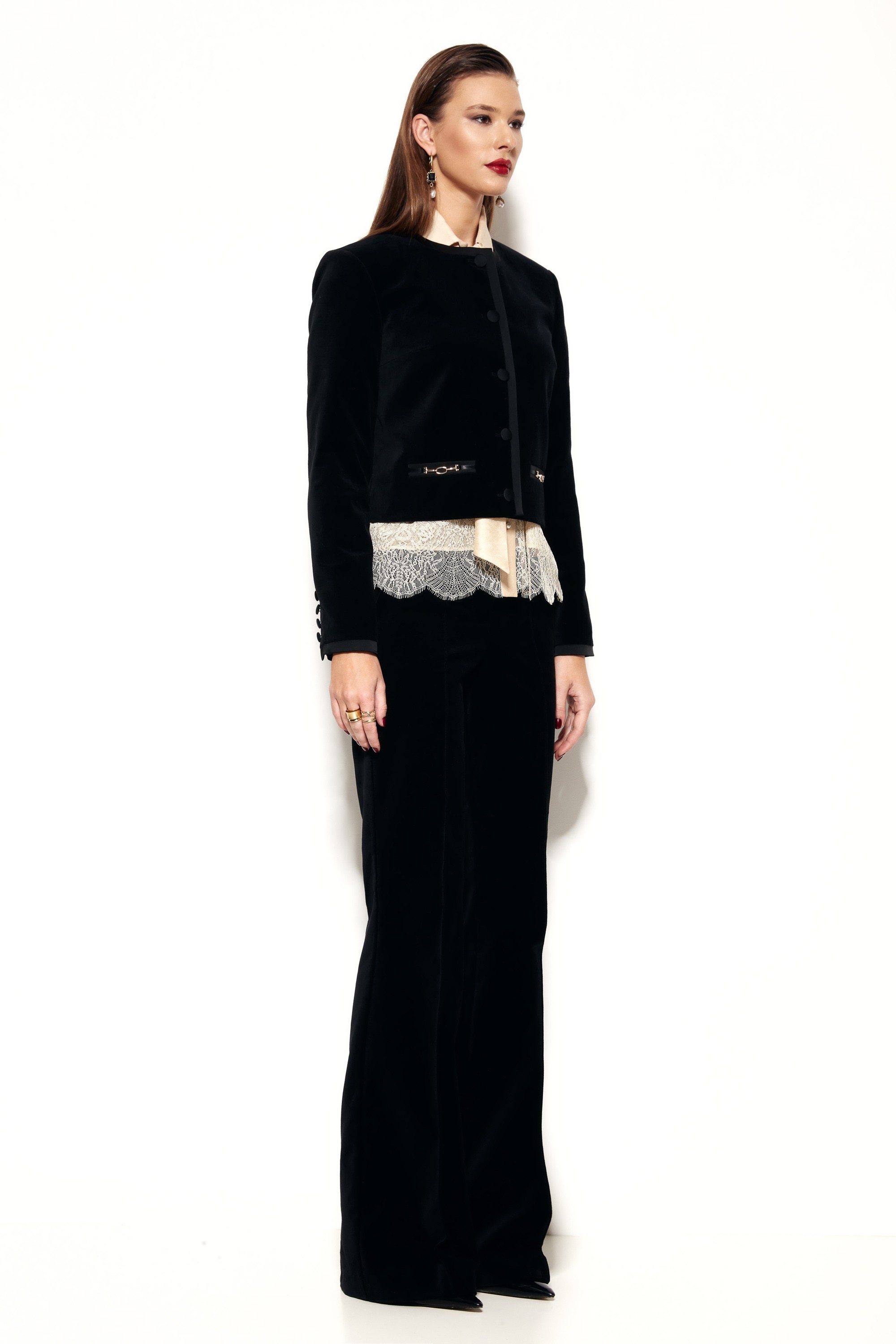 Жакет бархатный прямого кроя, длиной выше линии бедер.