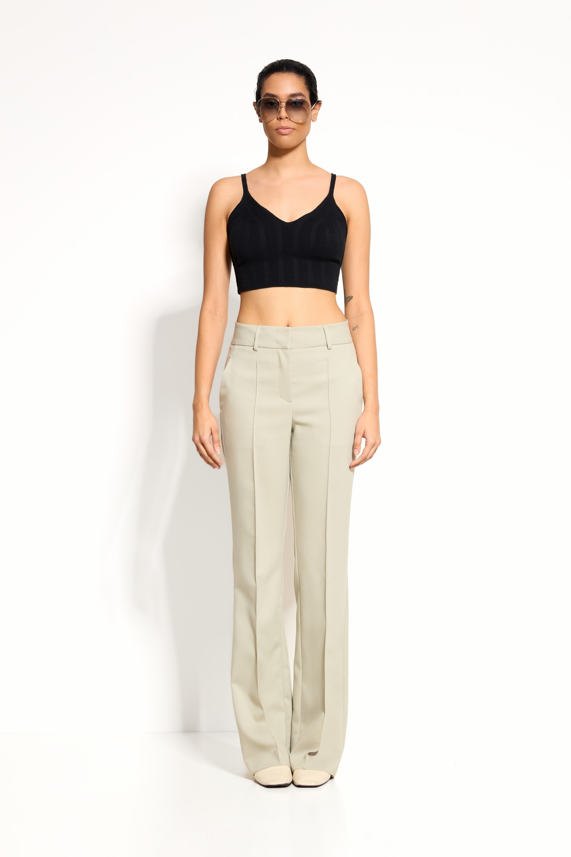 Элегантность и стиль — стрелка и расширение от колена создают современный и выразительный силуэт.