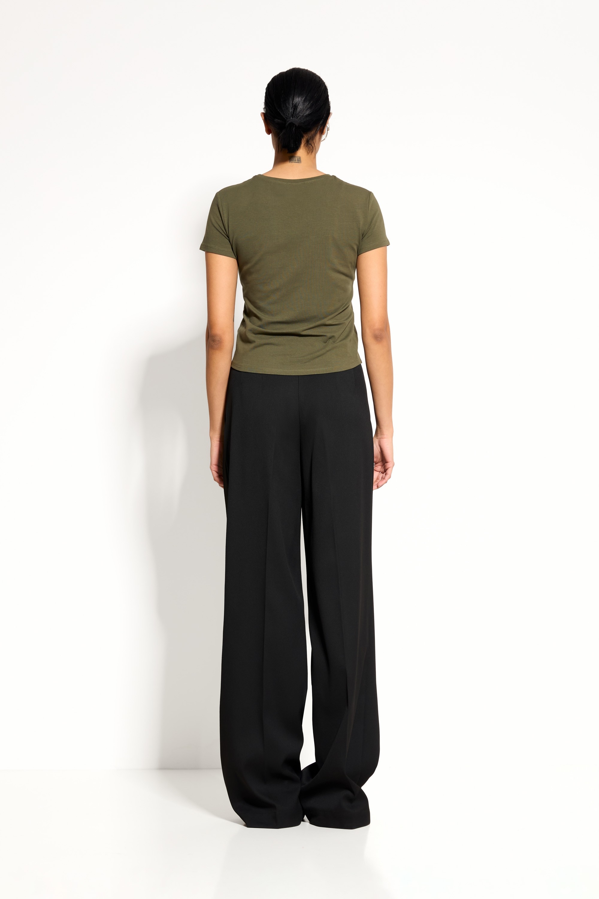 Низ: классические брюки, юбка миди или джинсы для сбалансированного и современного образа.