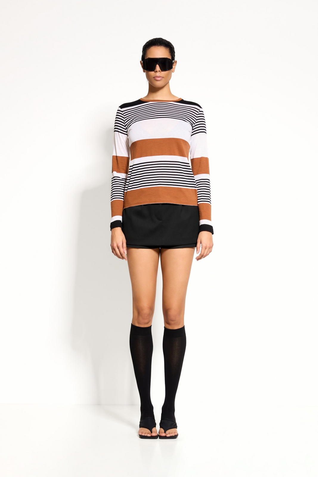 Полосатый джемпер Lakbi 55396 из коллекции Spring 2026 — это универсальная, базовая модель с полосатым узором и длинными рукавами, которая легко вписывается в гардероб на каждый день. Лёгкая и продуманная вязка создаёт аккуратный силуэт, а классический принт делает джемпер идеальной основой для множества стильных луков.