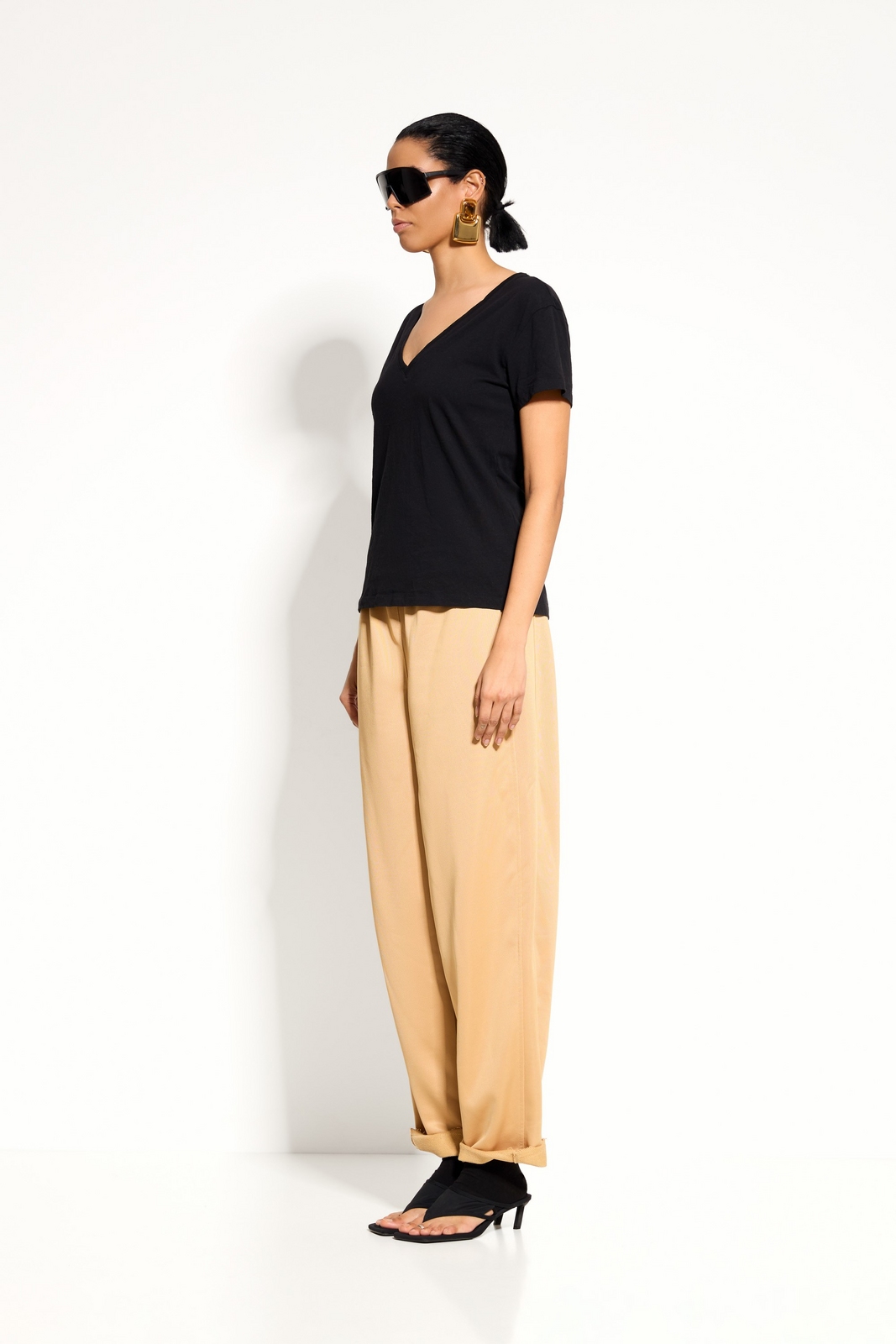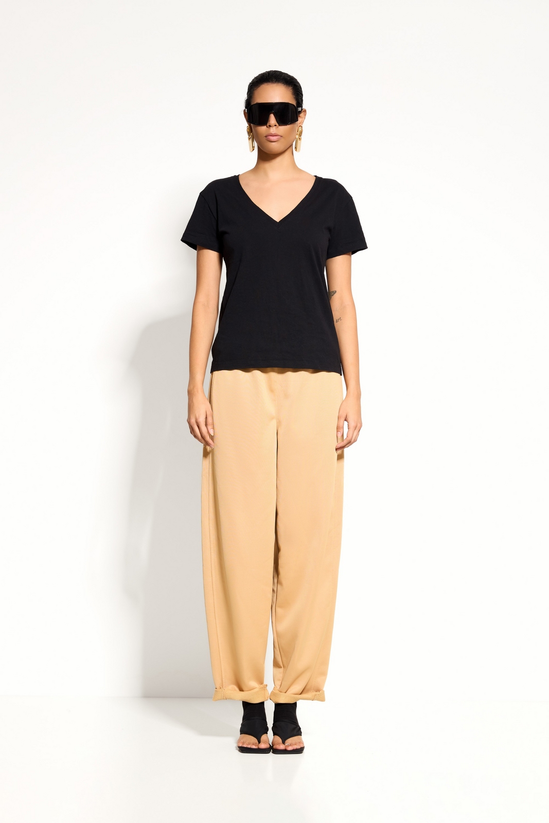 V‑образный вырез — визуально удлиняет шею и добавляет лёгкости образу.