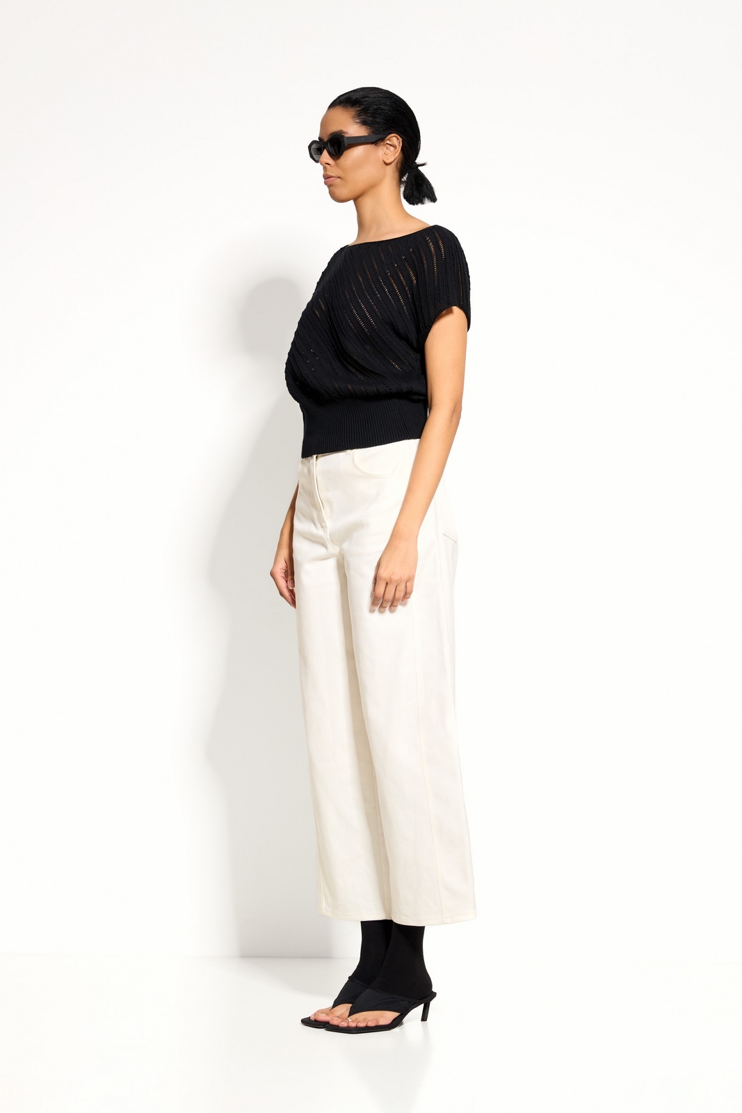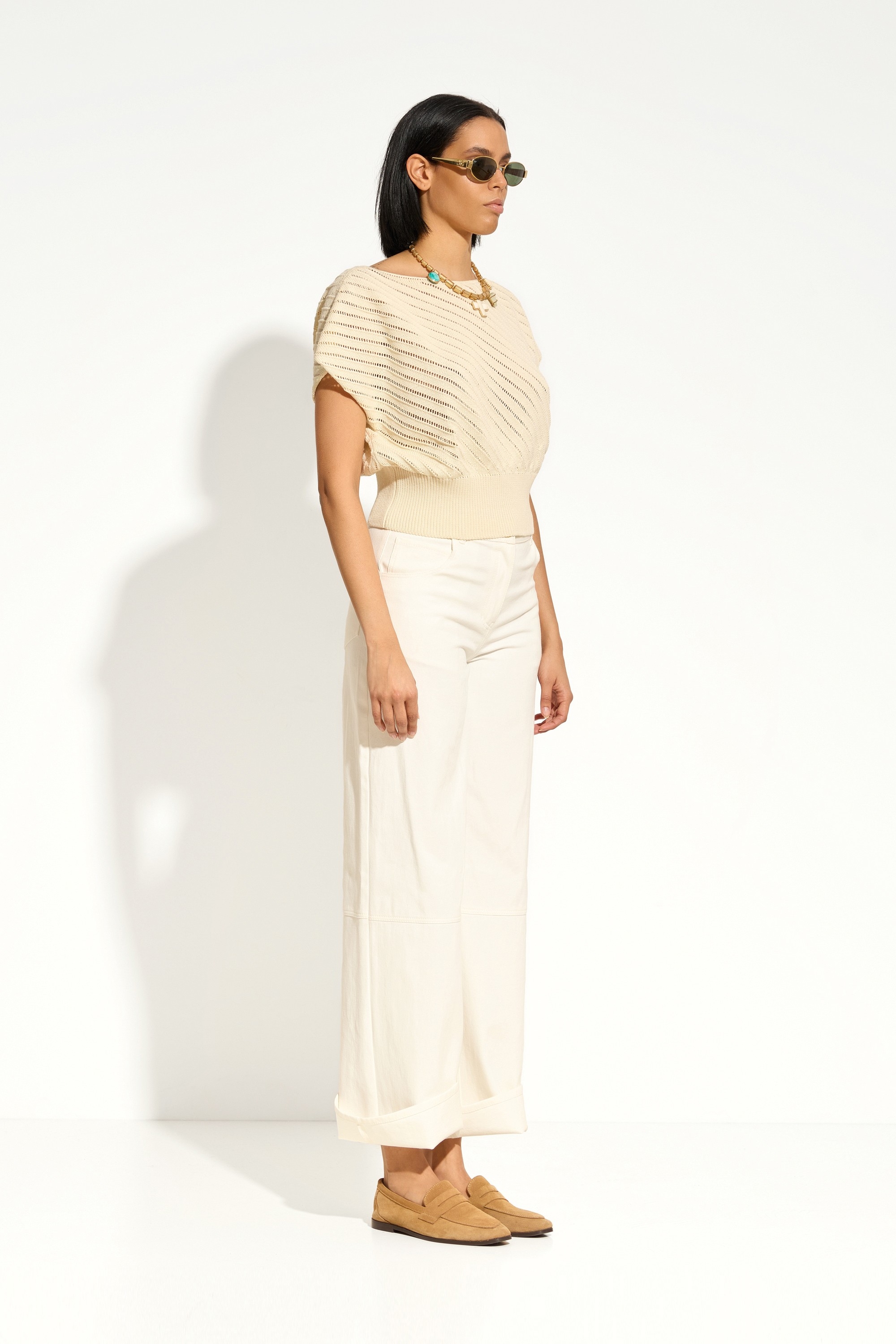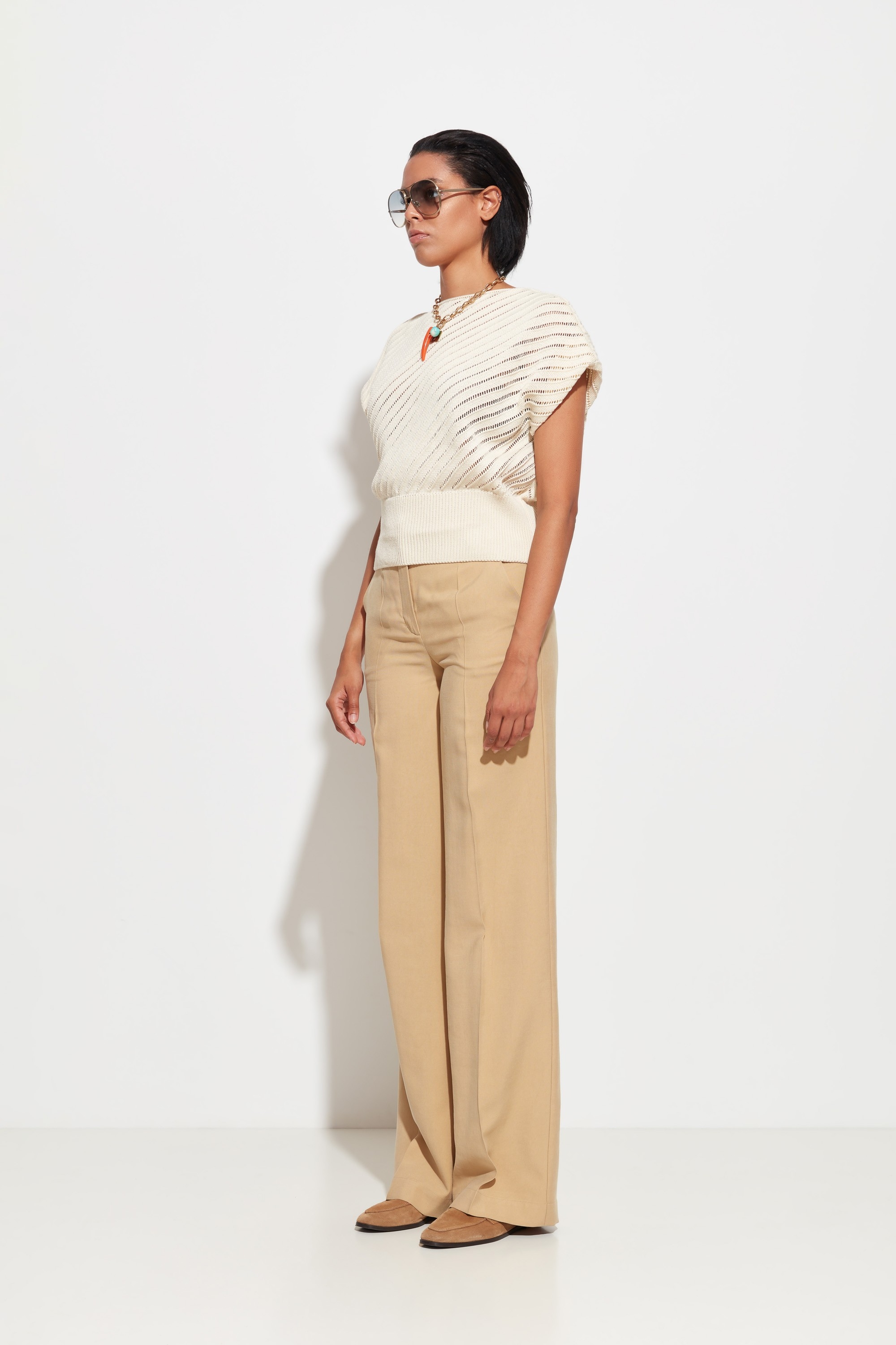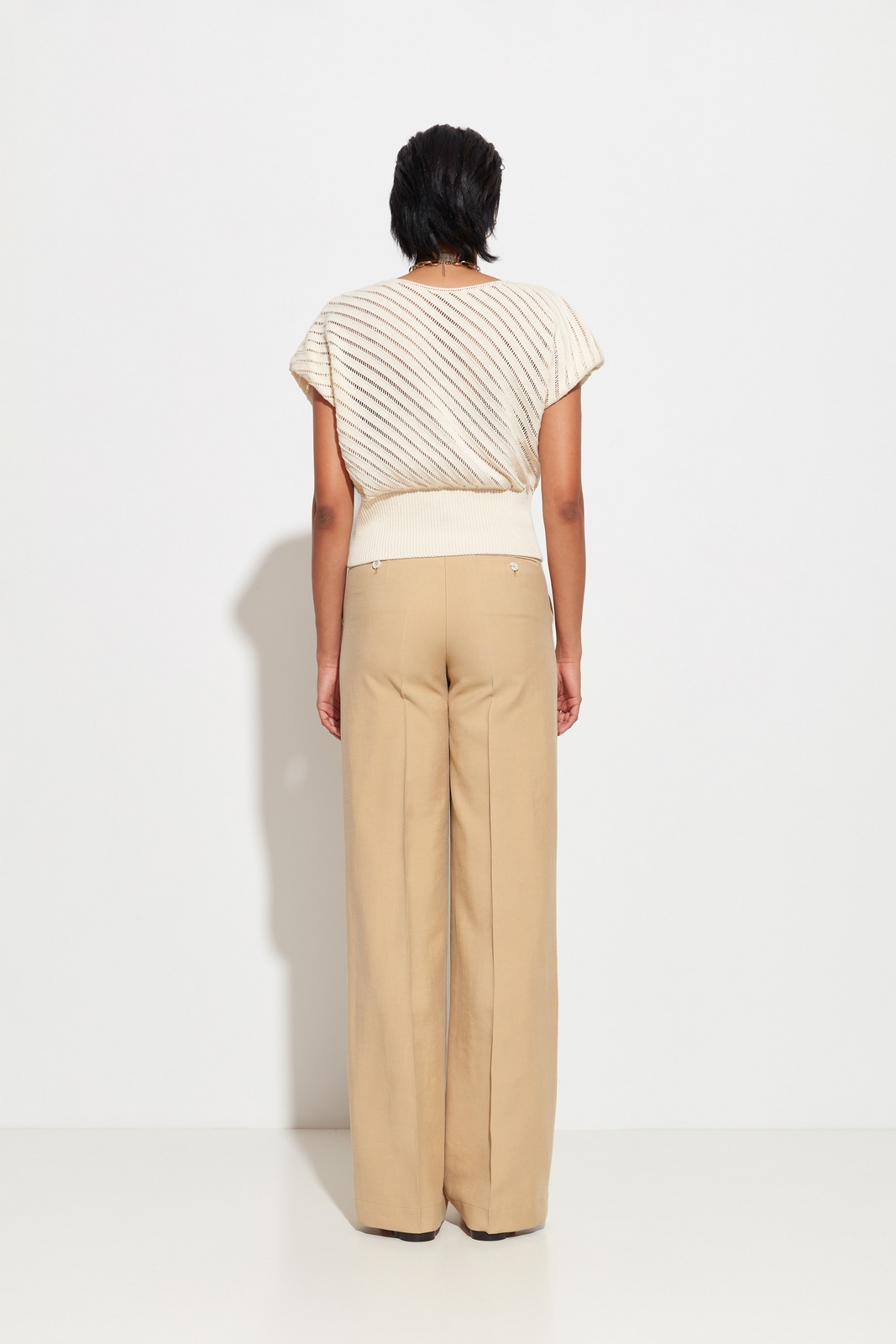 Широкий эластичный пояс из вязки — регулируемый объём и аккуратная форма низа.