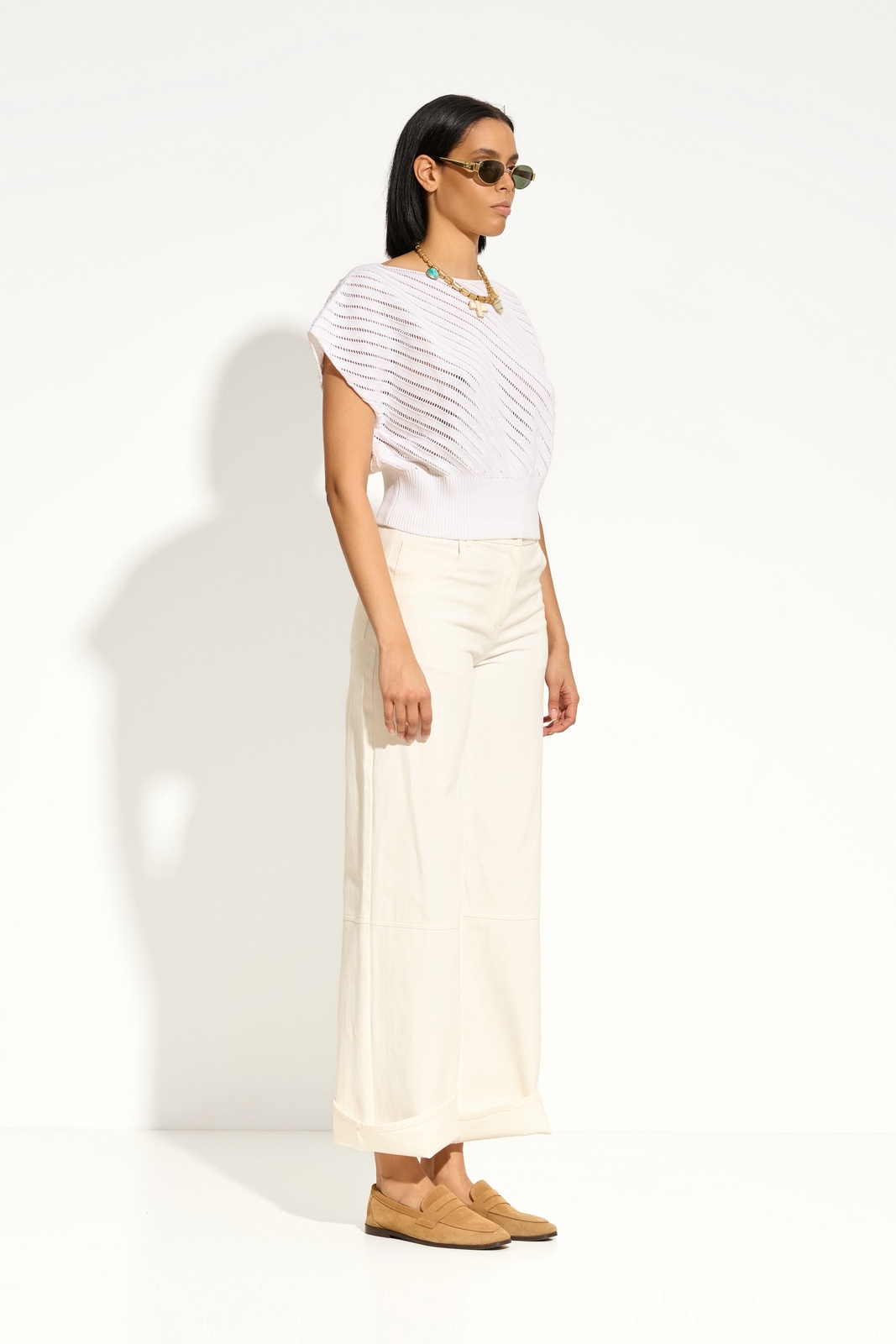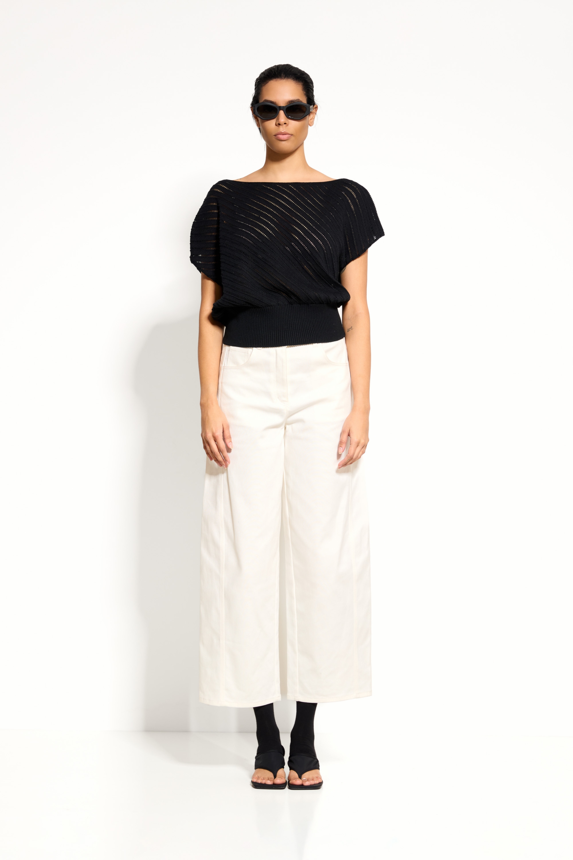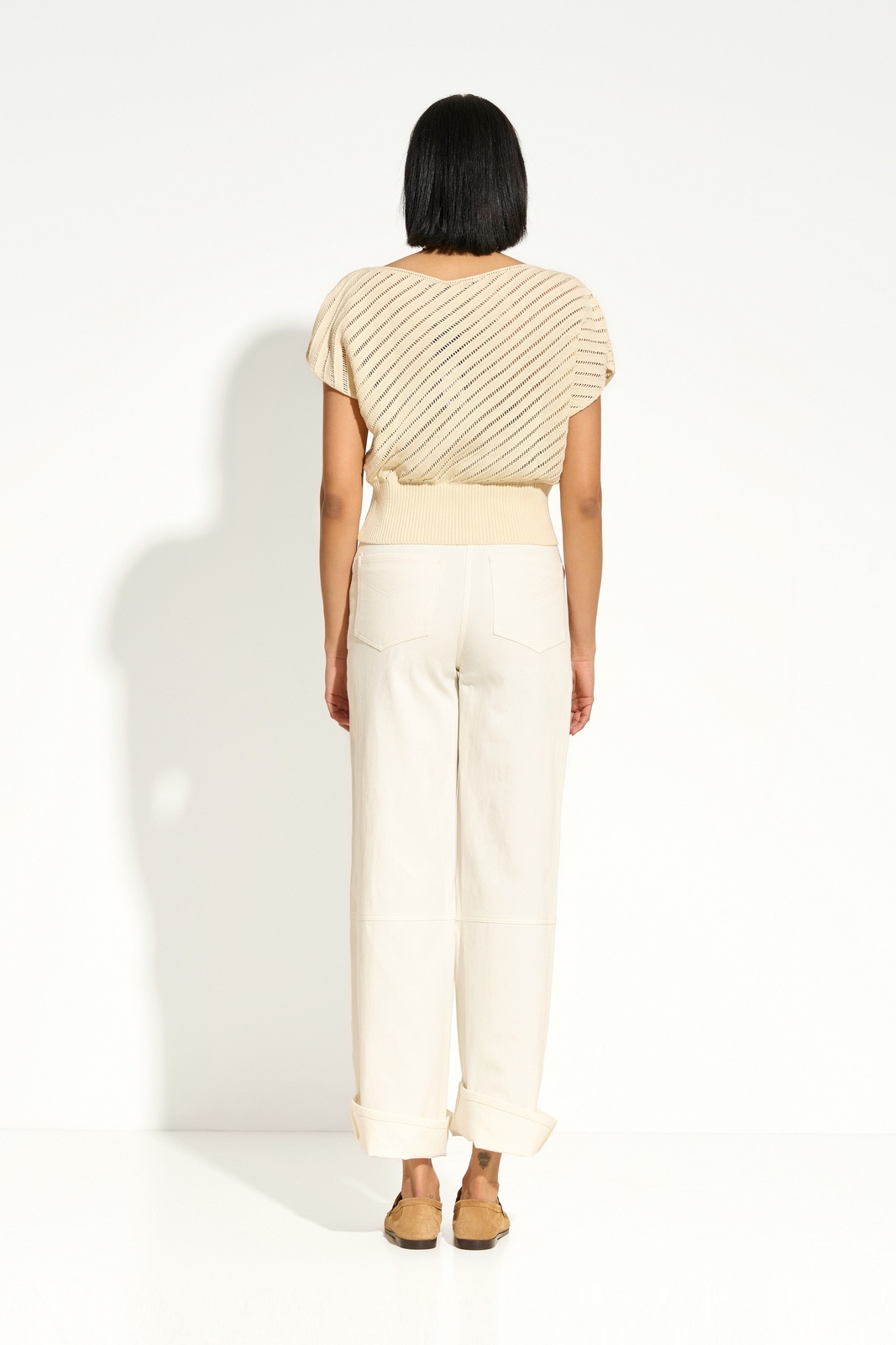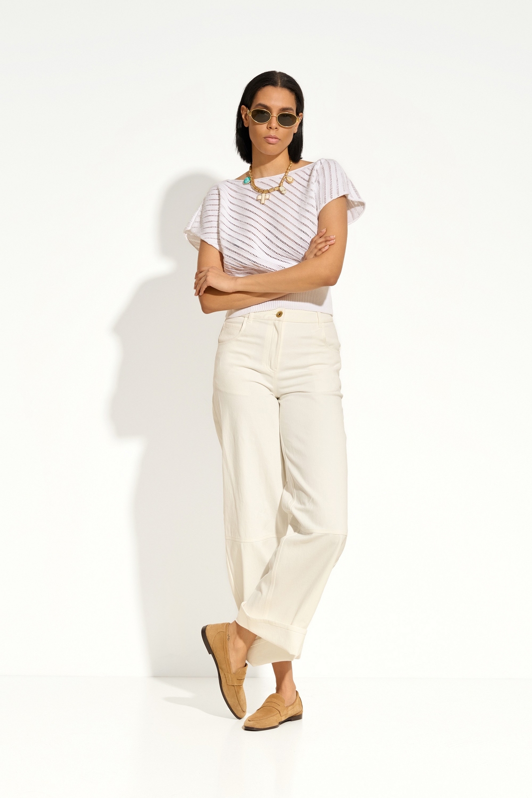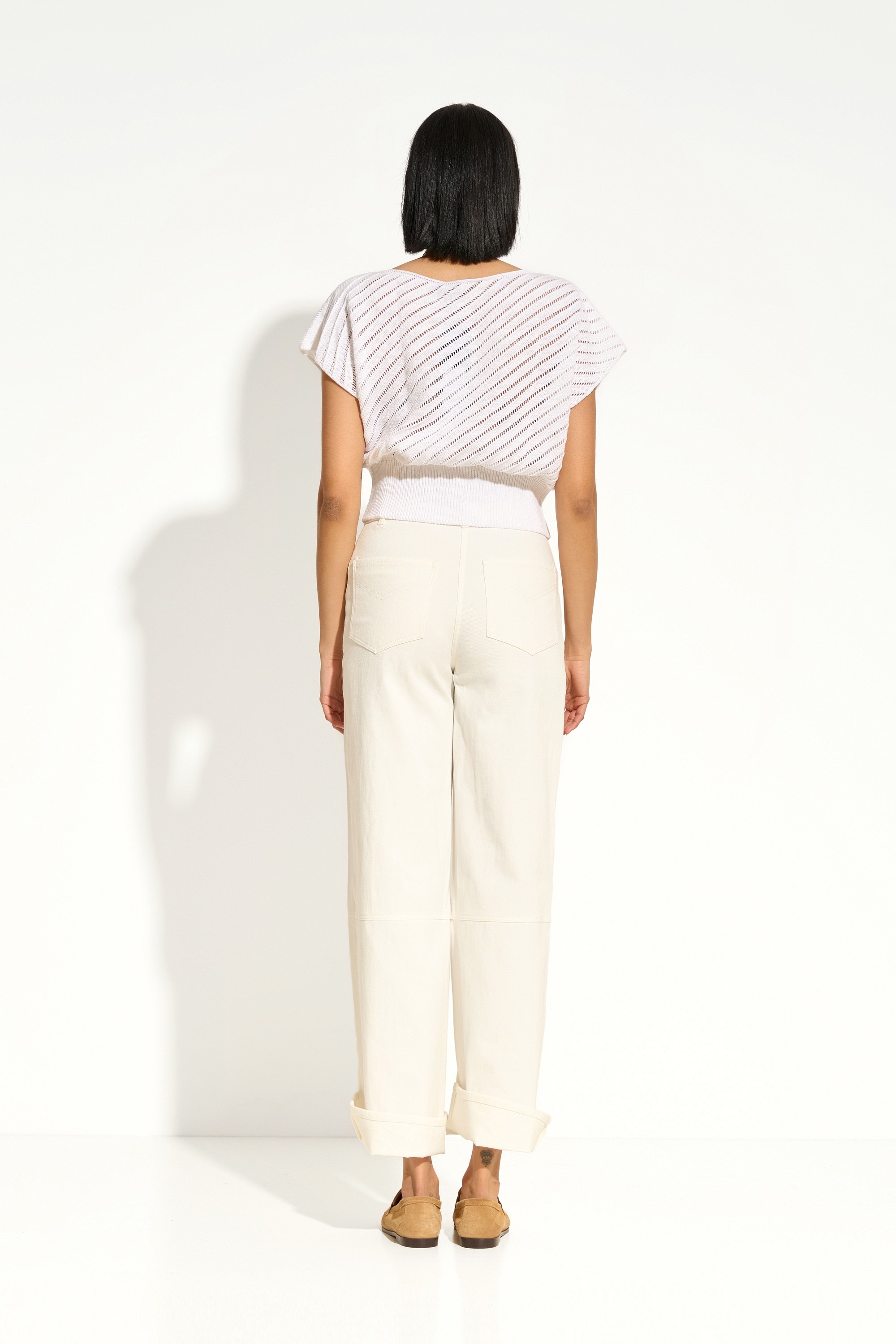 Широкий эластичный пояс из вязки — регулируемый объём и аккуратная форма низа.
