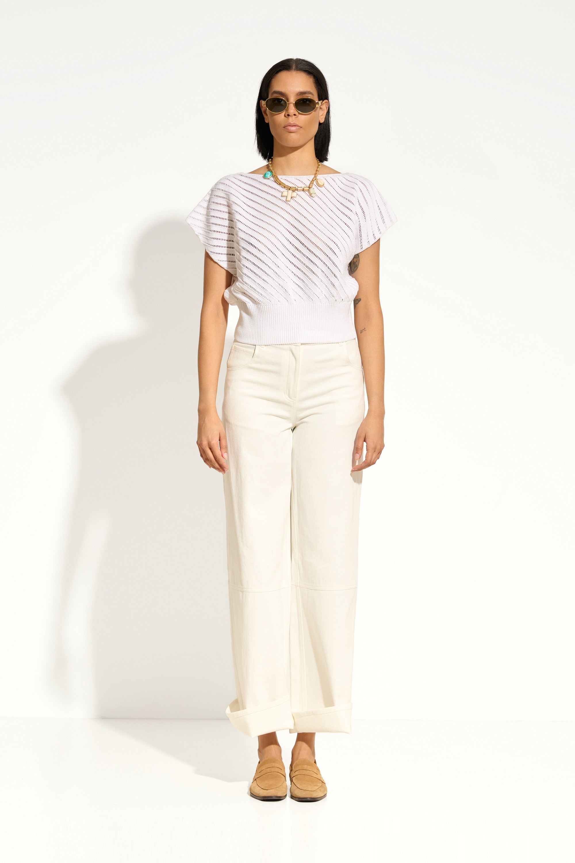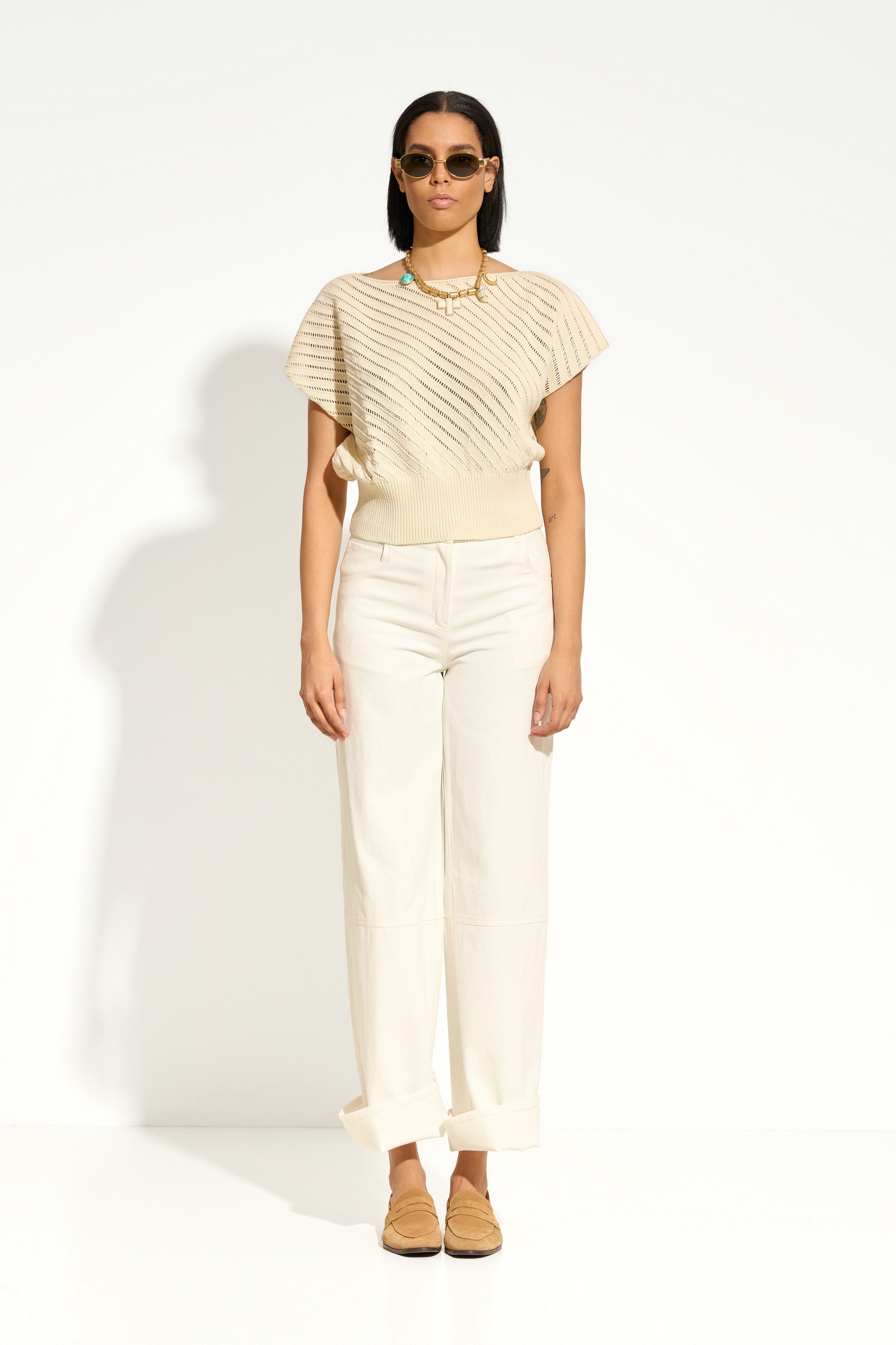 Спущенная линия плеч — современный акцент, создающий расслабленный силуэт.