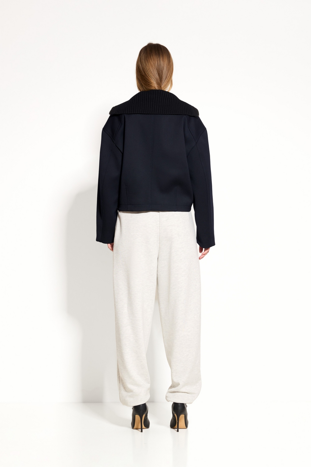 Куртка Lakbi 55399 — современная модель с высоким вязаным воротником и лаконичным принтом.