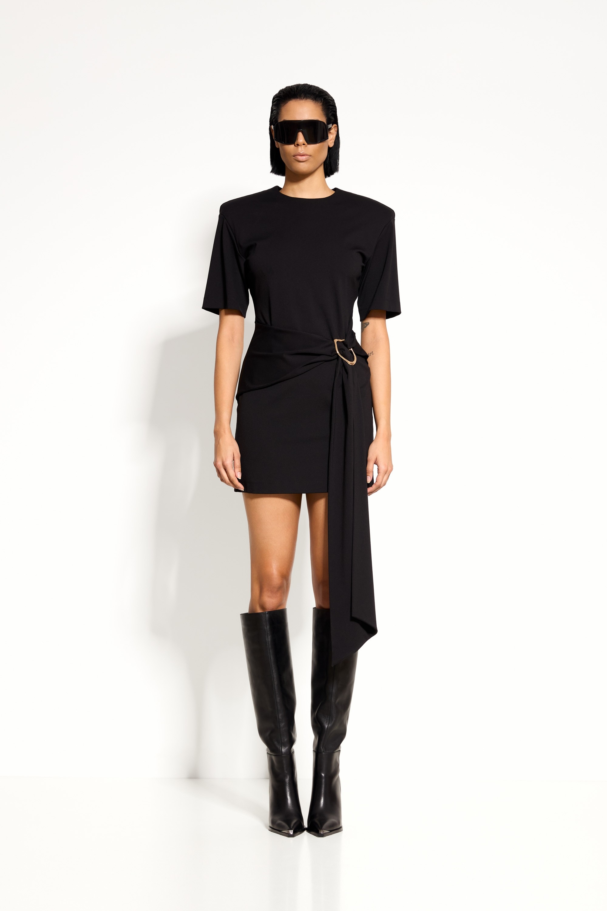 Выразительный силуэт — расширенные плечи и акцент на талии формируют стильный баланс пропорций.