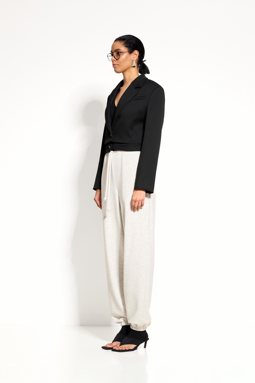 Аксессуары: минималистичные украшения и аккуратная сумка подчеркнут современность модели.