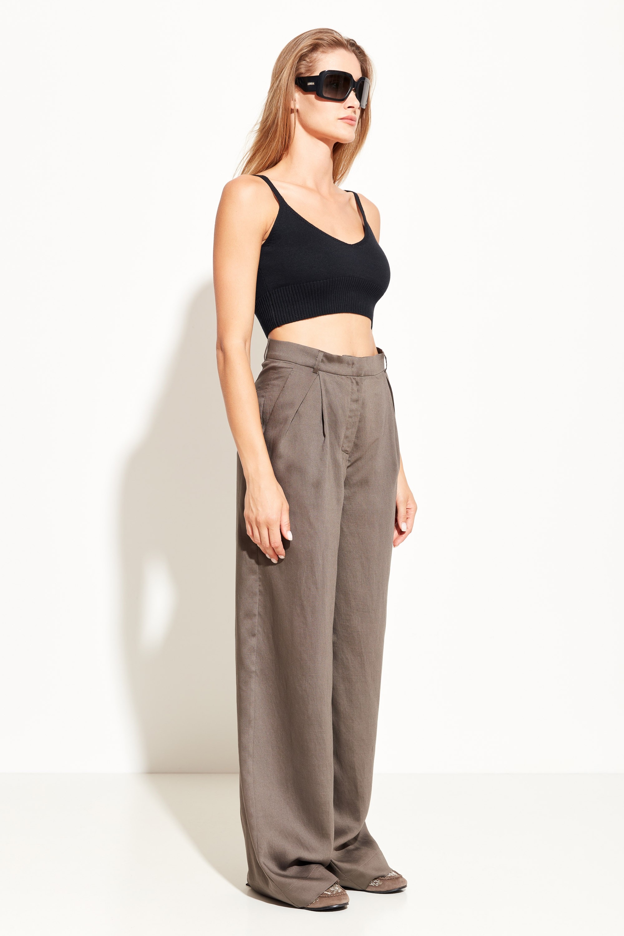 Брюки полуприлегающего силуэта, расширенные от линии бедер к низу. Посадка изделия высокая. По бокам обрезные карманы. Классическая модель, которая подойдет к любому типу гардероба.