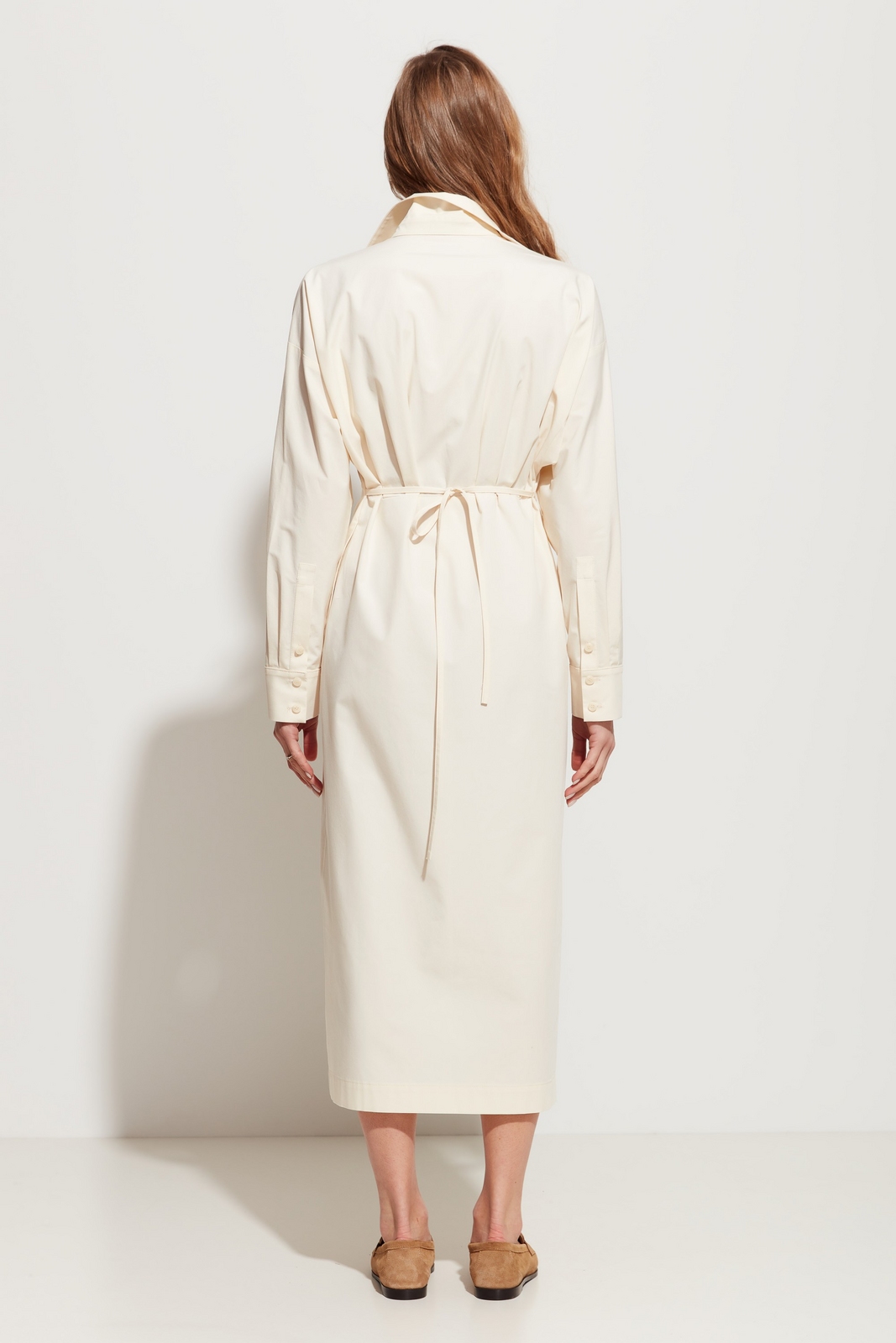 Платье полуприлегающего силуэта в длине миди. Воротник стояче-отложной. Линия плеч спущена. По бокам прорезные карманы. Классическая модель, которая идеально подойдет для создания эфеектных образов по любому случаю.