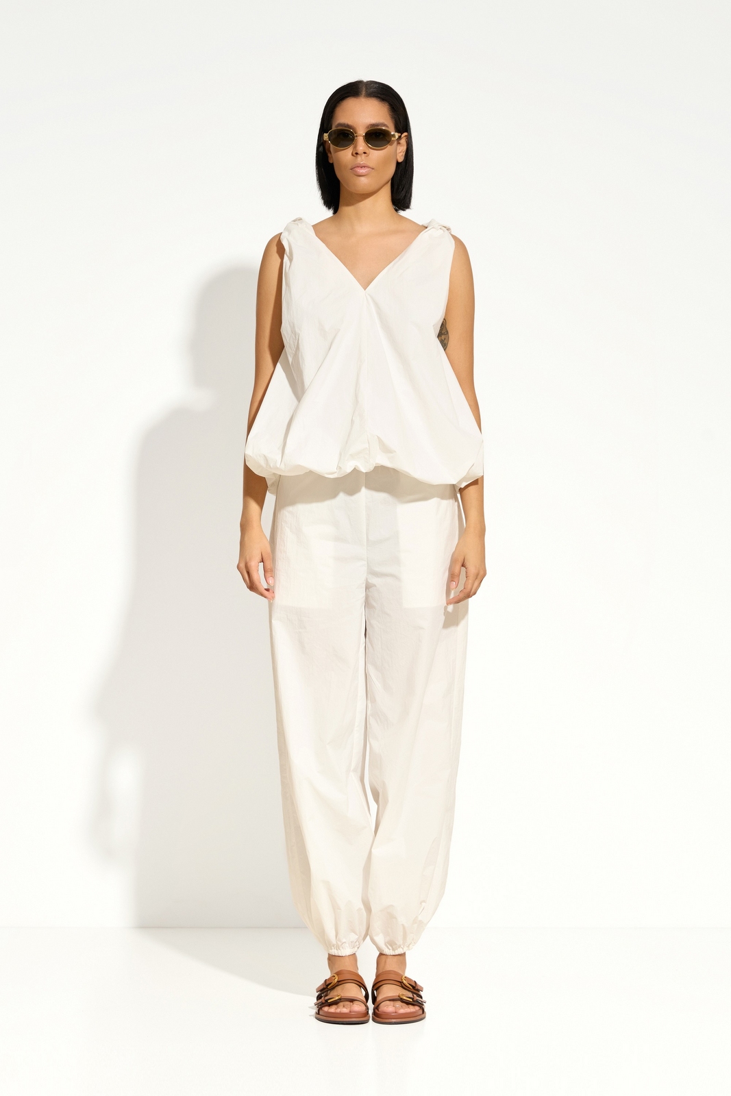Свободный крой в стиле «алладин» — создаёт лёгкий, расслабленный силуэт и ощущение комфорта.