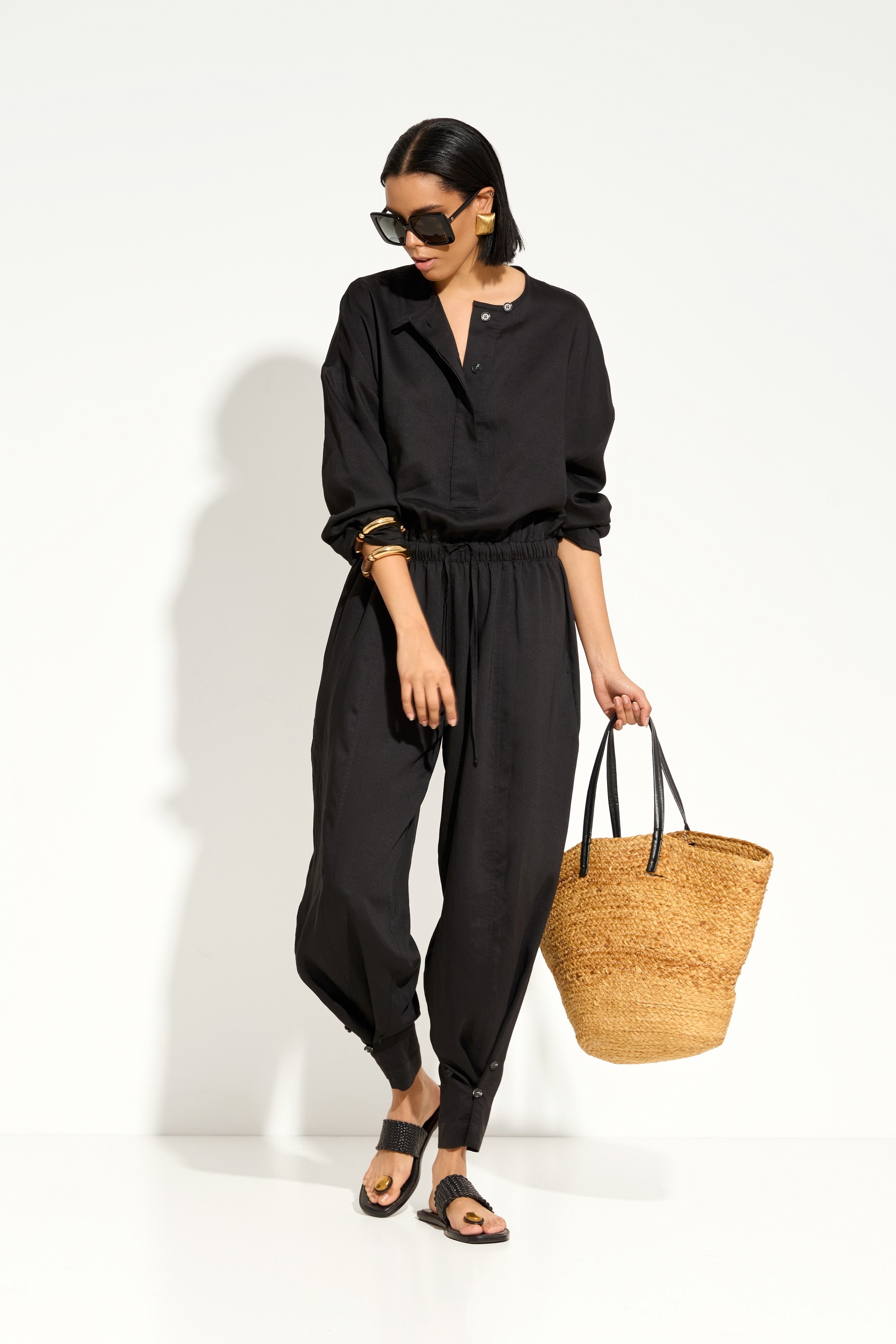 Летний комбинезон Lakbi 55648 с кулиской на талии и регулируемым низом — комфорт и стиль в одном изделии.