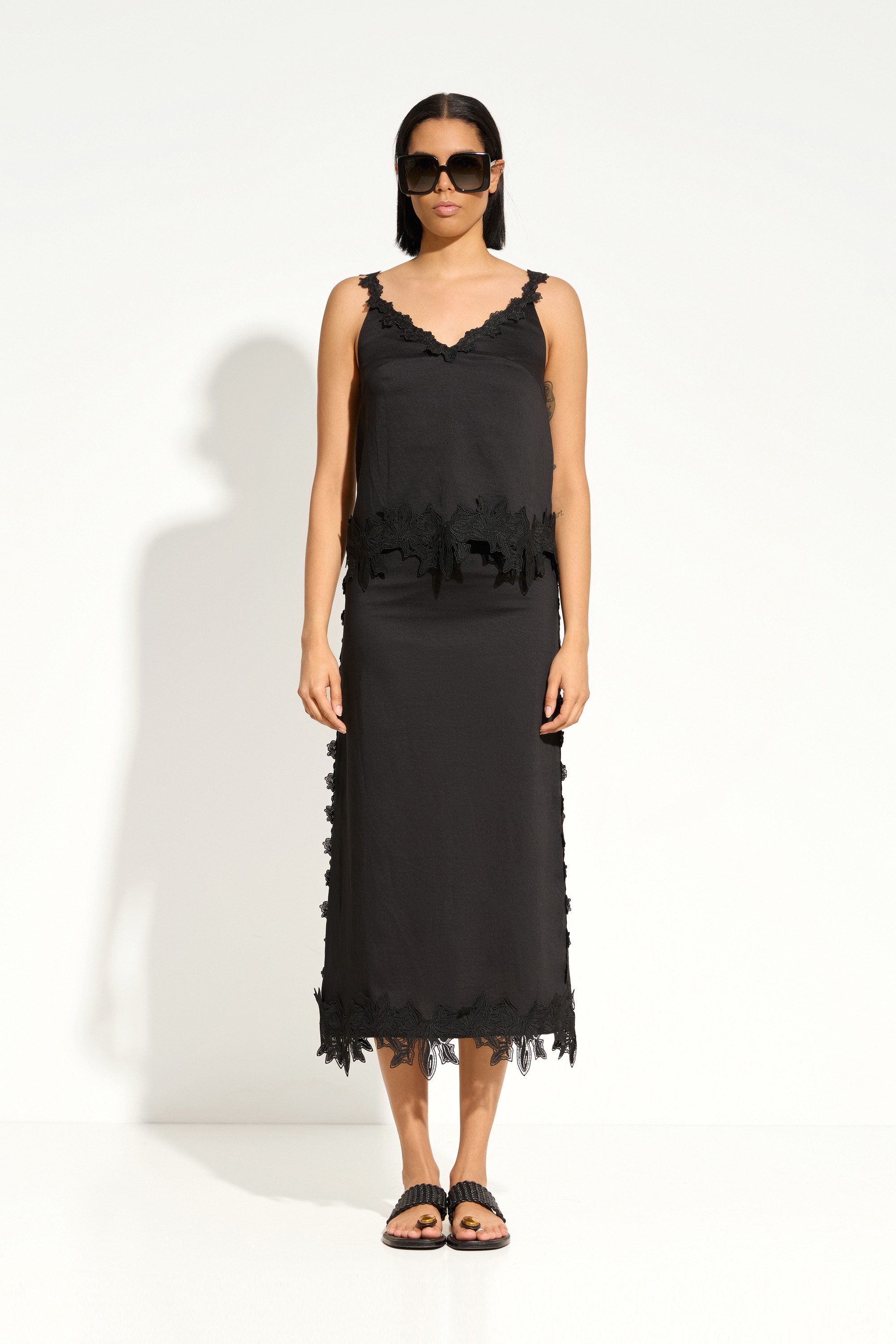 Бретели и низ декорированы кружевом — элегантная и женственная деталь.