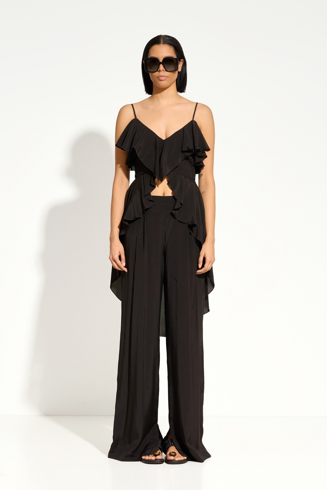 Боковая и задняя длина ниже линии бедер с воланами — плавное и воздушное движение.