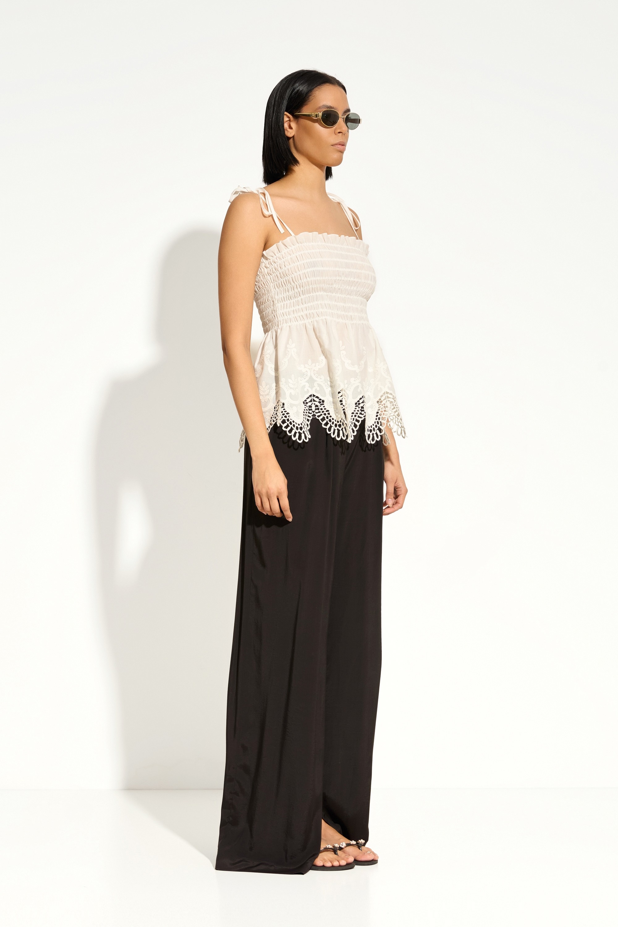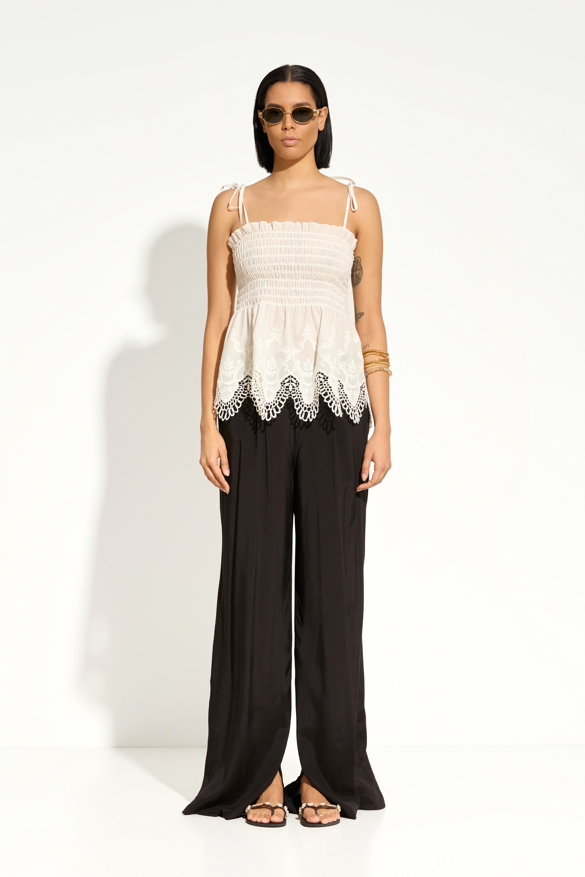Тонкие бретели с завязками на бантики — изящный и женственный акцент.