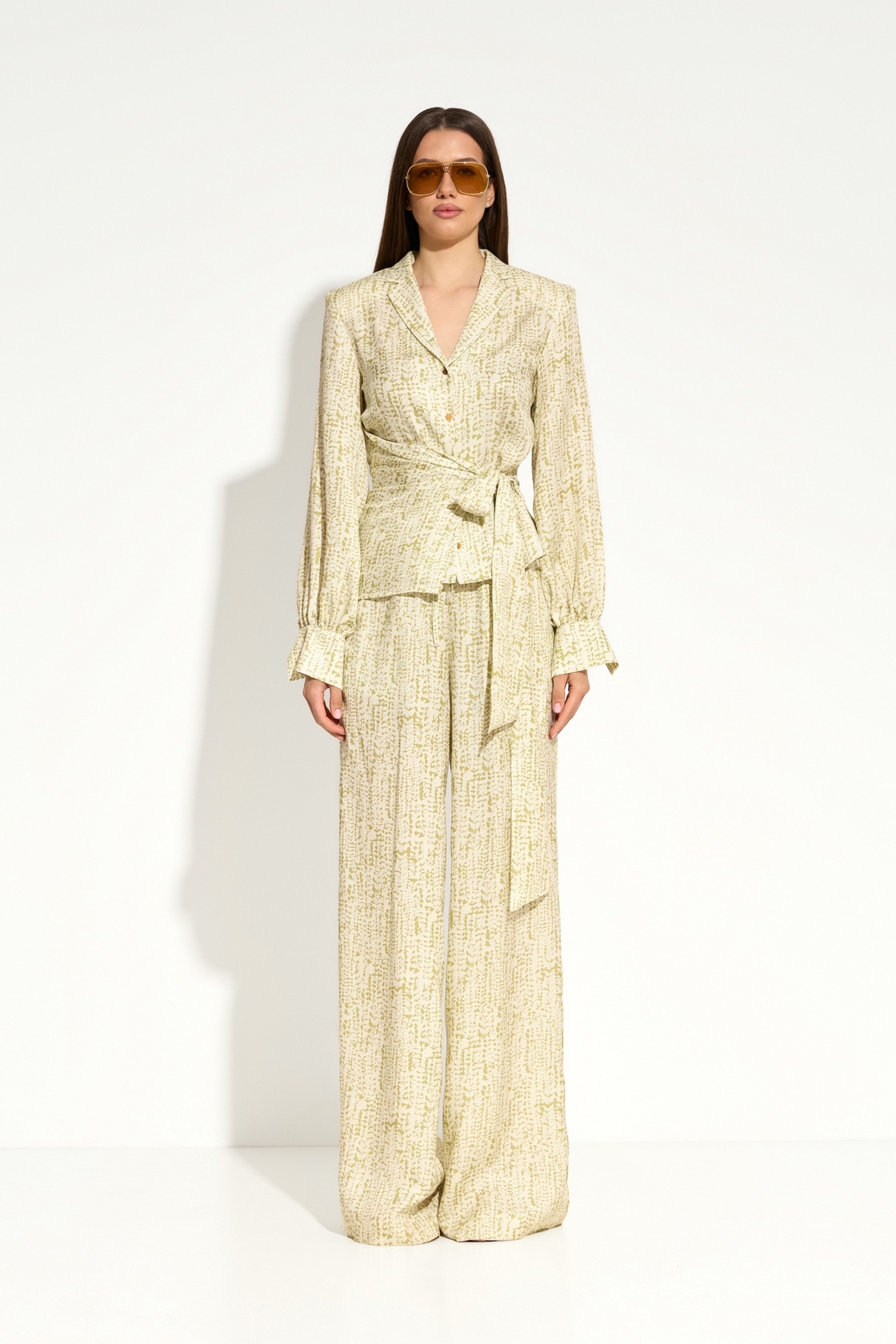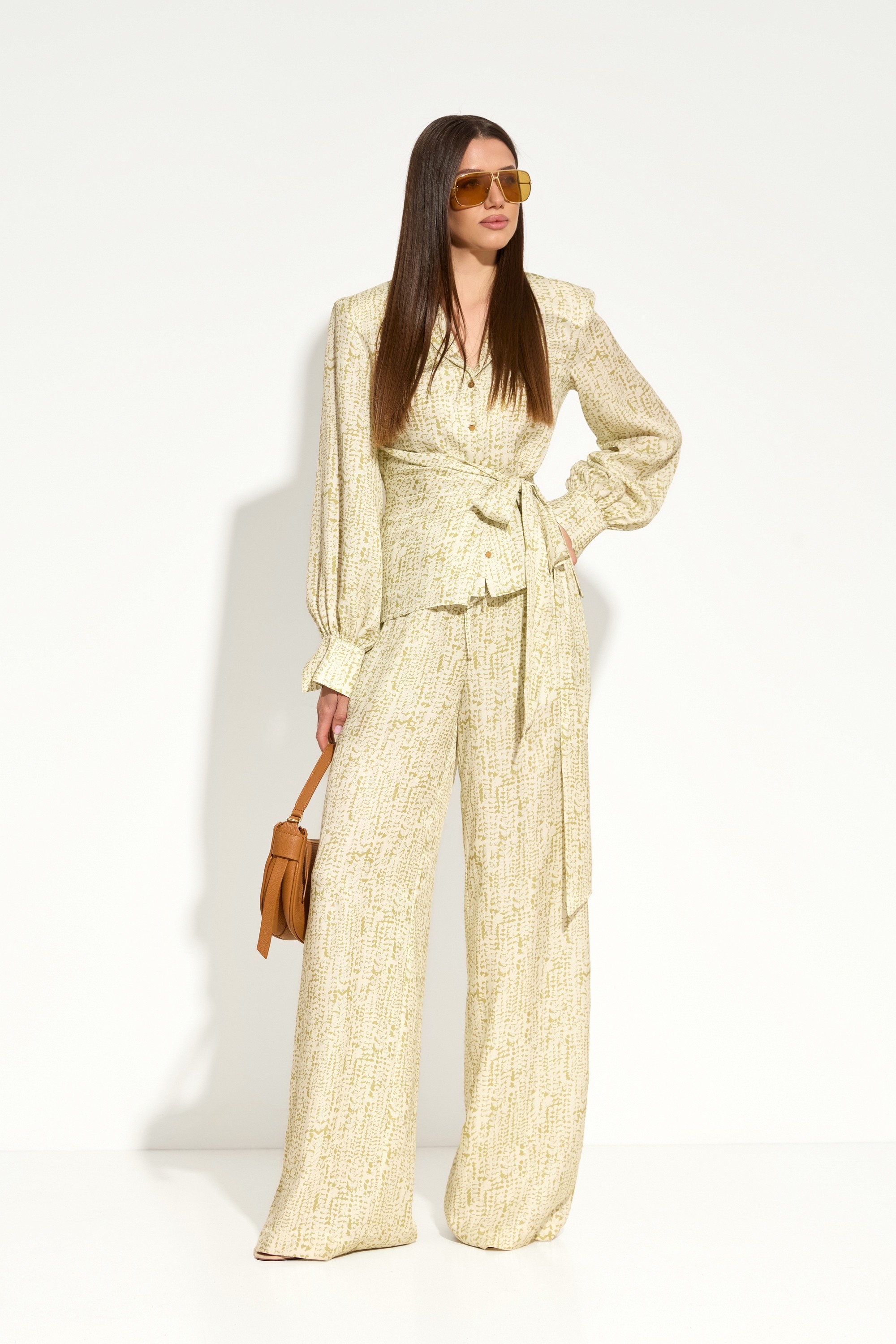 Блуза Lakbi 55799 полуприлегающего силуэта — элегантная модель с поясом и нежным принтом.