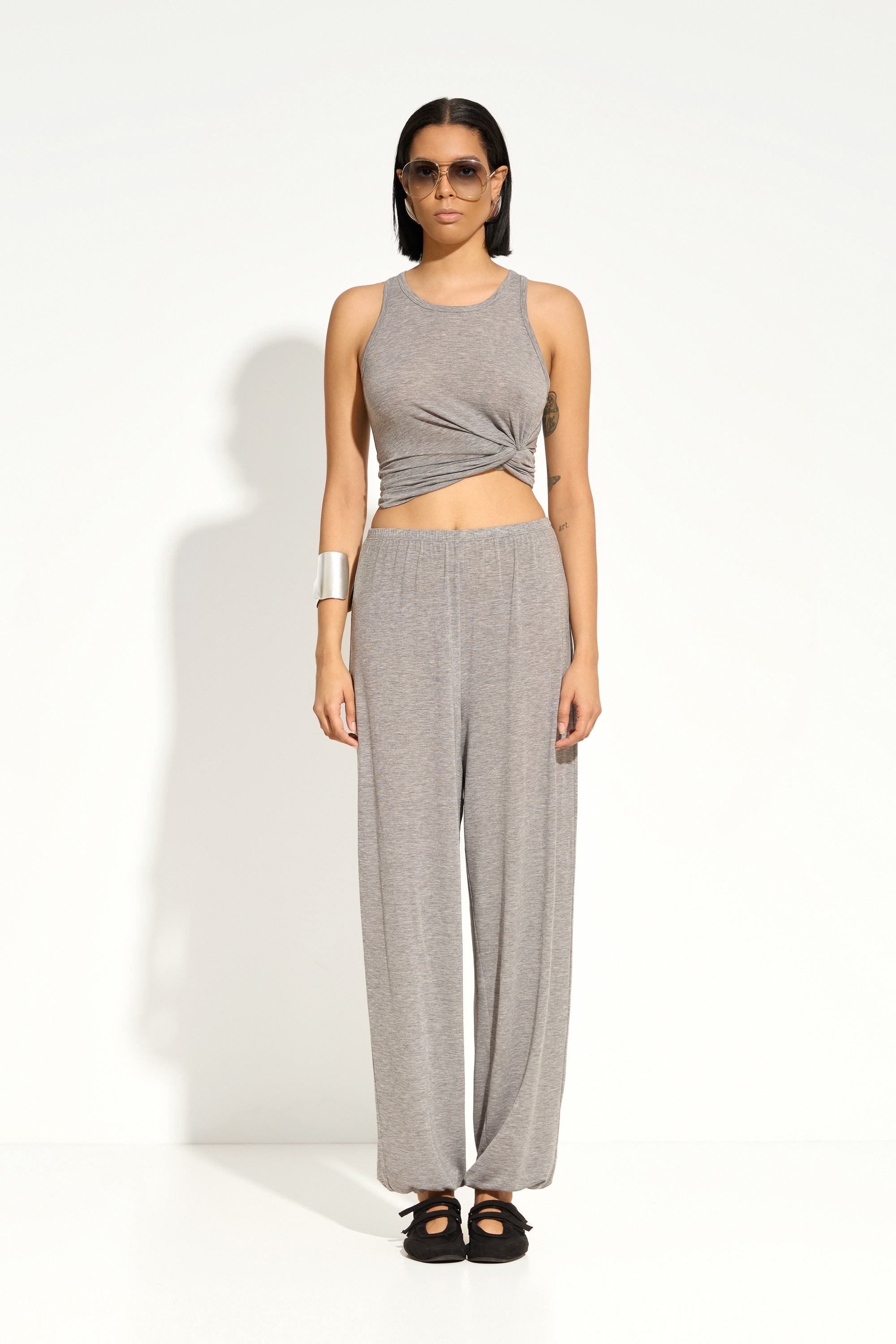 Пояс на эластичной мягкой резинке — удобная и регулируемая посадка.
