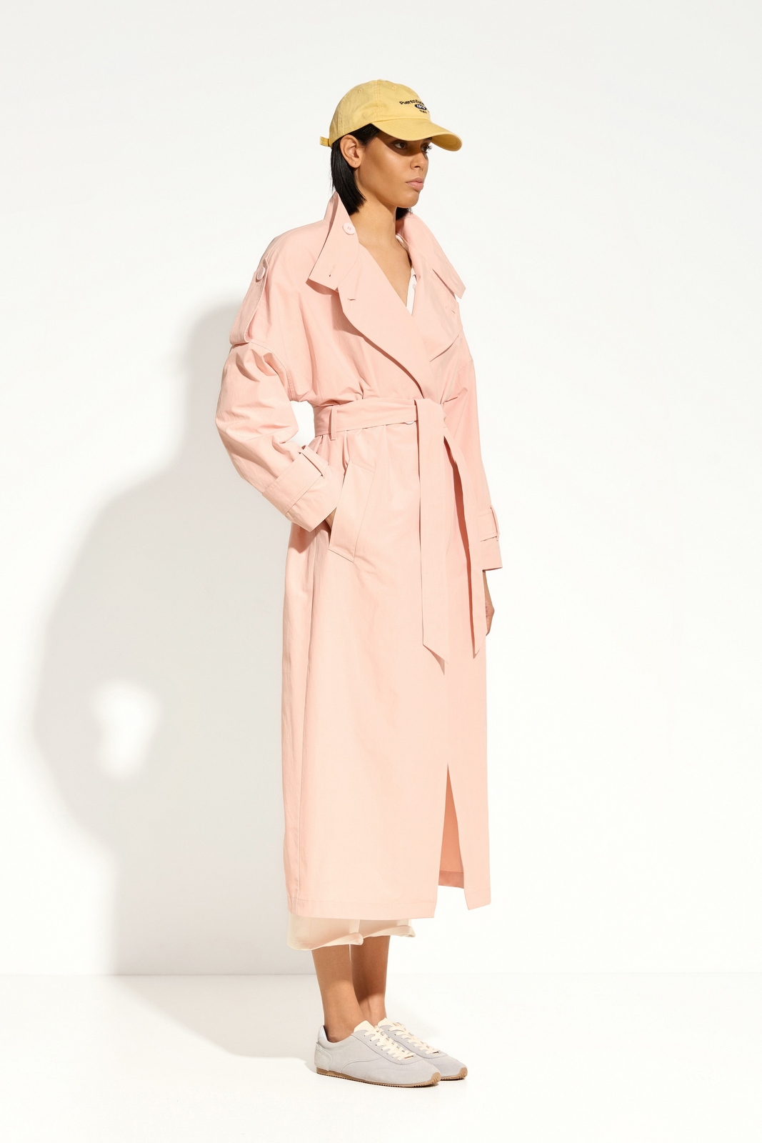 Практичность модели обеспечивают прорезные карманы по бокам, а лаконичный крой делает плащ стильным акцентом любого гардероба.