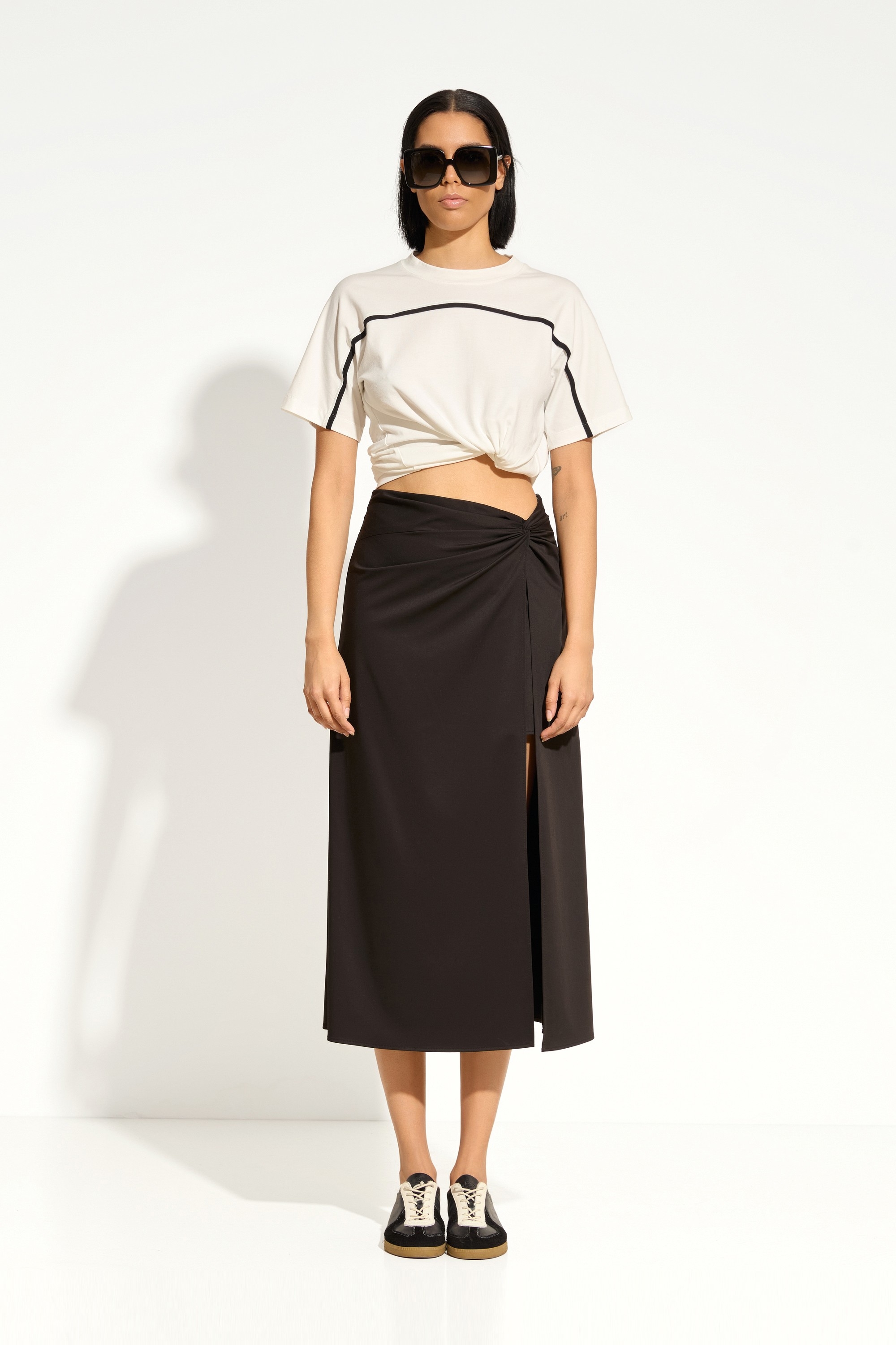 Юбка Lakbi 55660 миди прямого кроя с высоким разрезом — элегантность и дерзкий акцент в образе.